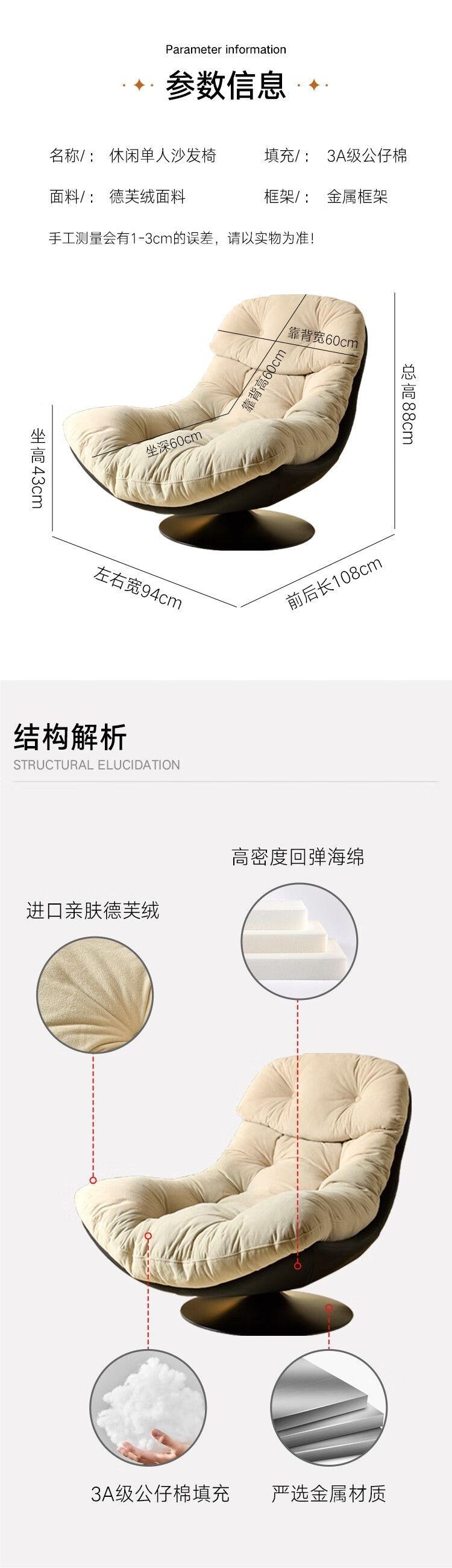 Sillón Individual Nuevo de Diseño para Ocio Reclinable y para Sentarse, Sillón Sofá Giratorio, Lujo Ligero para Sala de Estar, Balcón, Silla Perezosa Net Red