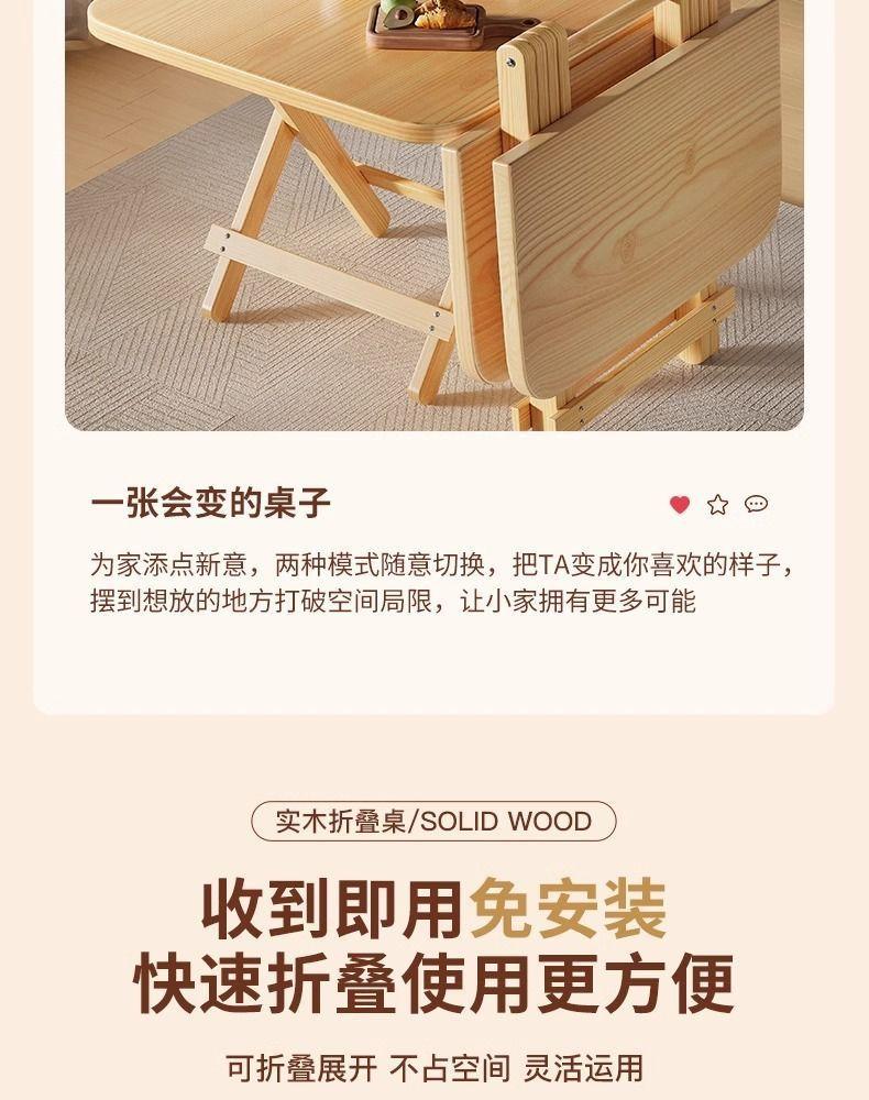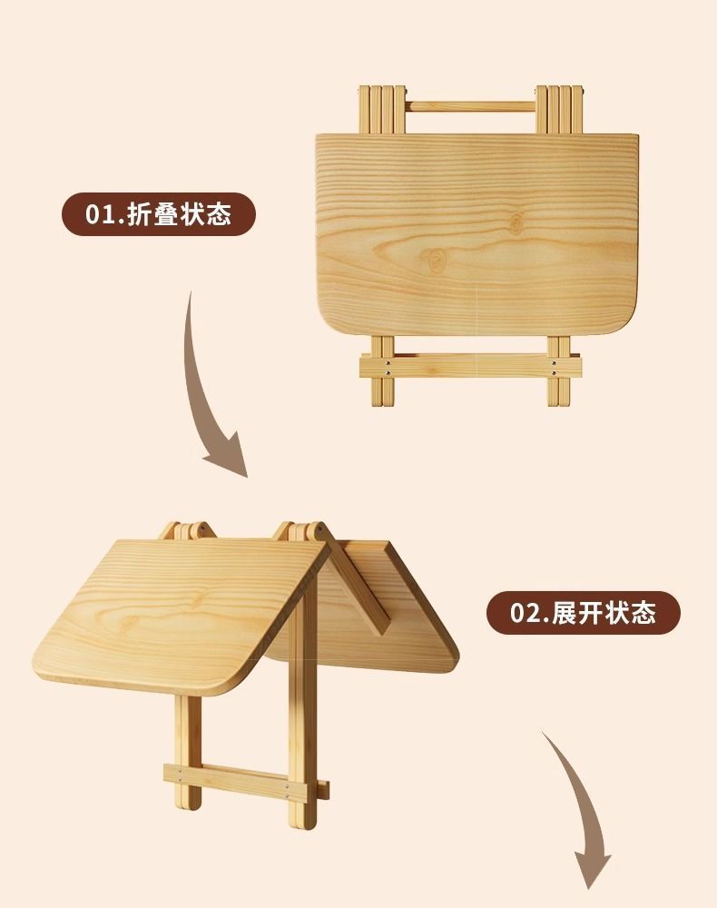 Folding Solid Wood Table [50*50*58cm] Imported Pine Wood