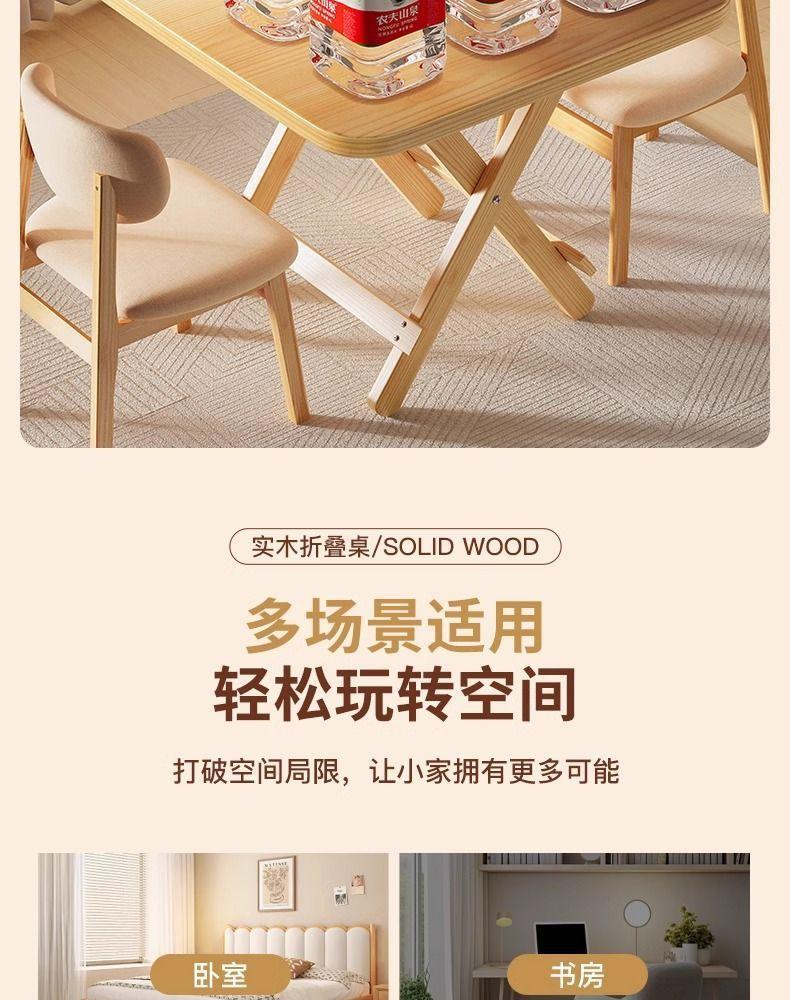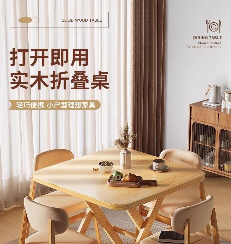 Mesa Plegable de Madera Maciza Mesa de Comedor Mesa Pequeña Mesa de Puesto Mesa para el Hogar Mesa de Estudio Mesa para Casa de Renta Mesa de Cartas Mesa Cuadrada