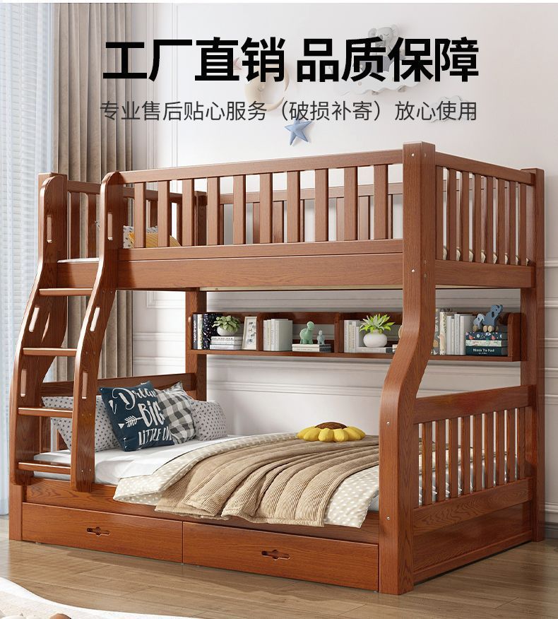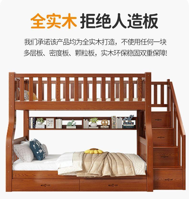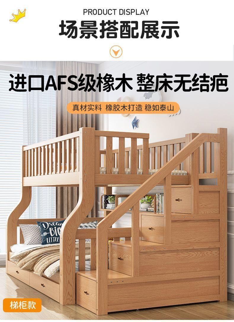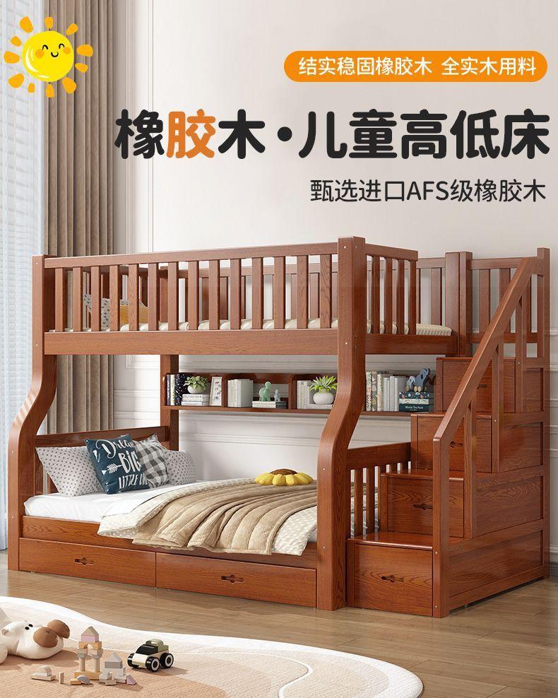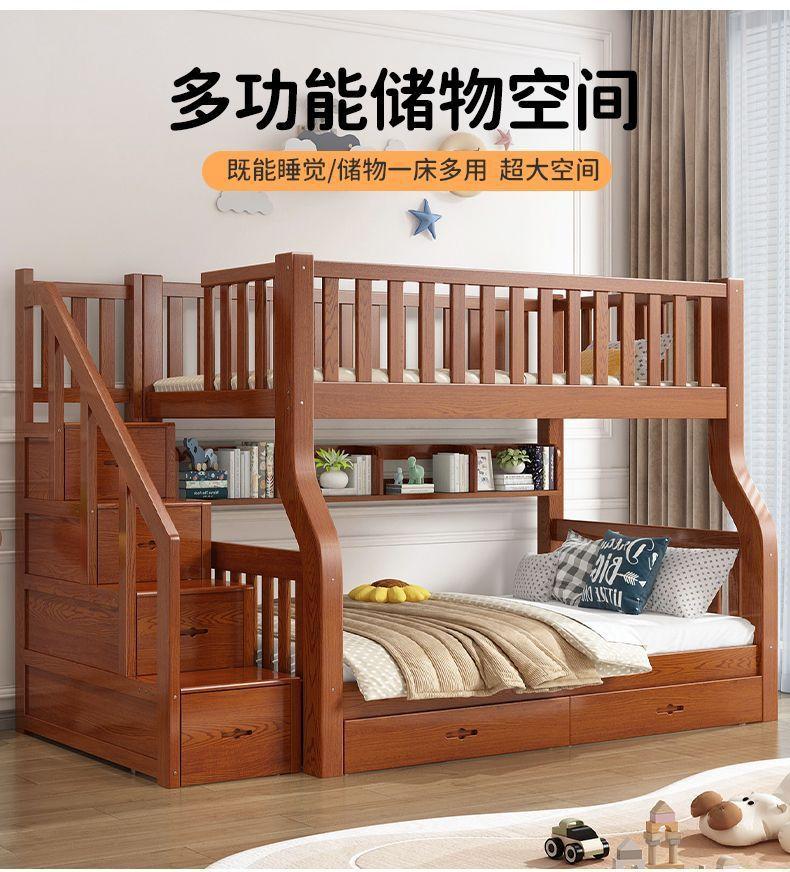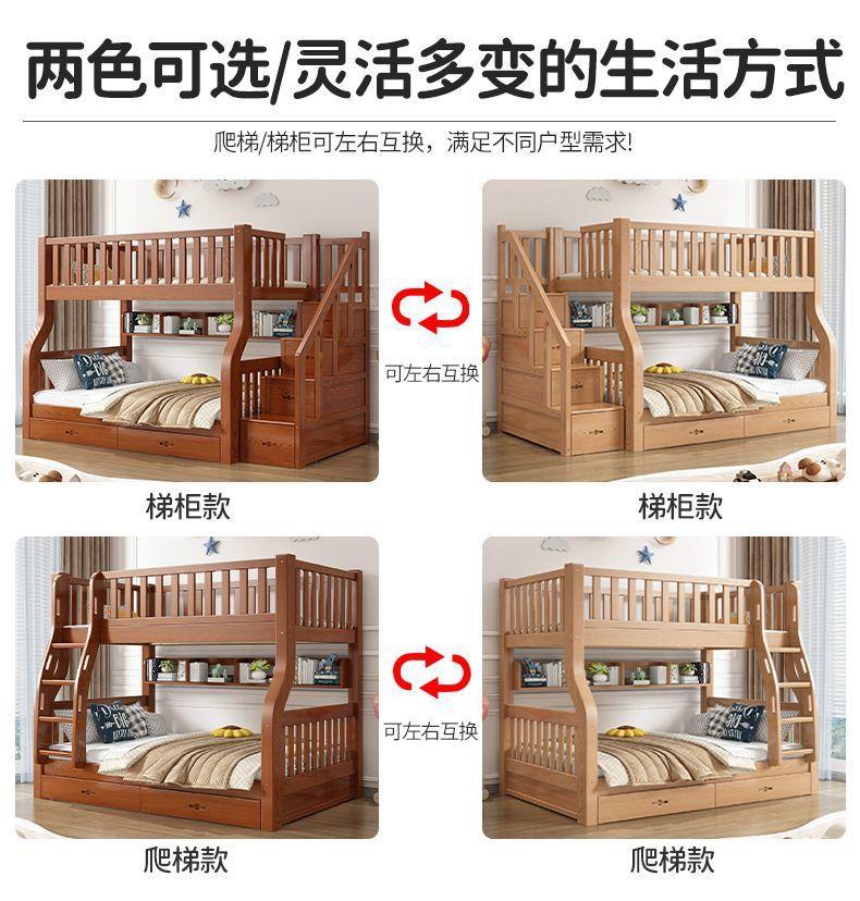 Litera cama de doble capa cama de madera de caucho litera infantil cama alta y baja multifuncional apartamento pequeño madera maciza litera de dos pisos