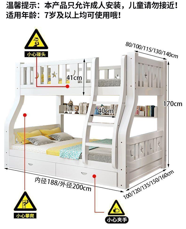 Variable ladder position + top bunk 80cm bottom bunk 100cm [Solid wood]