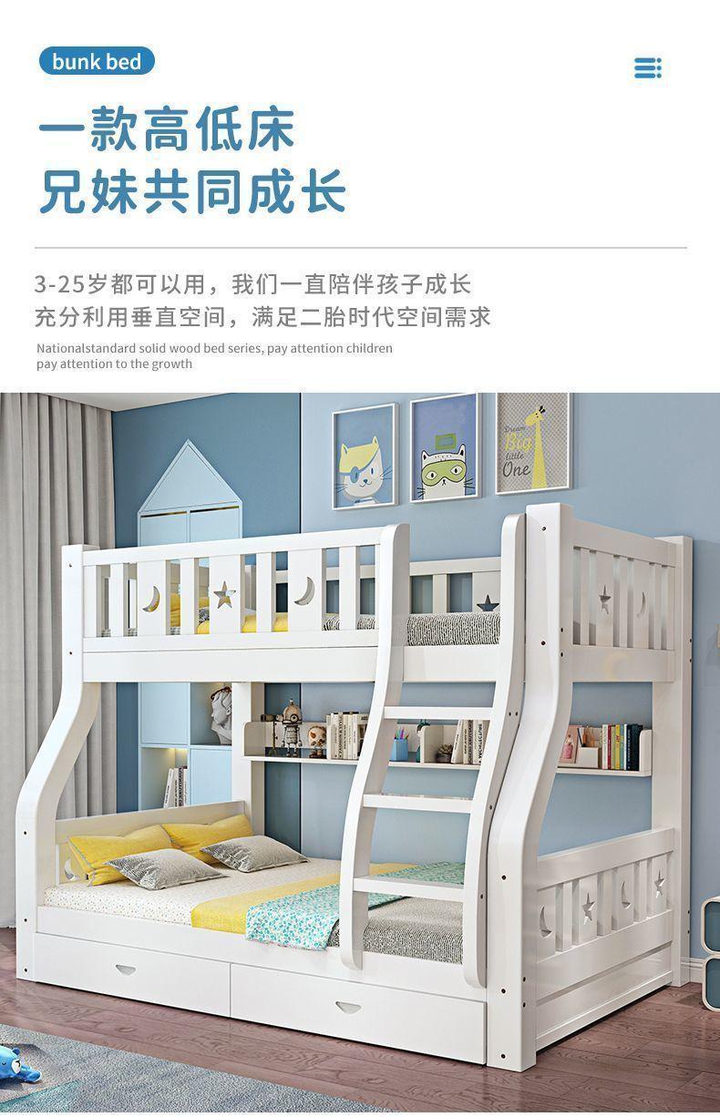 Litera de Madera Maciza con Cama Nido Cama de Doble Capa Cama Litera Superior e Inferior Cama de Dos Pisos Superior e Inferior Cama para Niños Engrosada y Reforzada Multifuncional