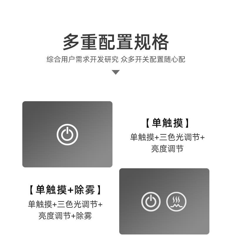 Basic model] no touch + white light (lights up when powered on), [regular style] single touch + white light, [...