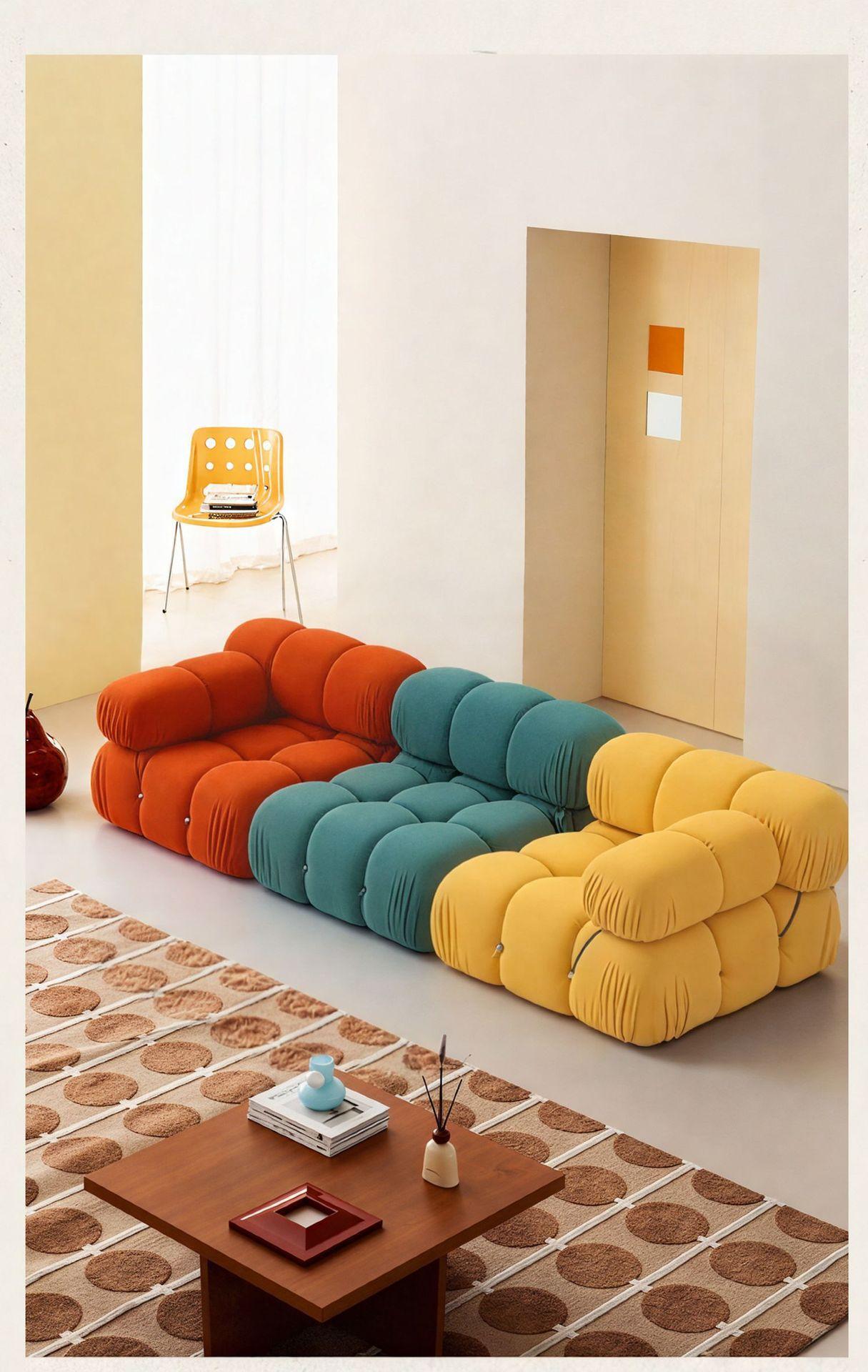 Compra Sofá modular de dos plazas de tela cuadrada de estilo de diseño minimalista italiano para sala de estar de apartamento pequeño, módulo de dopamina al por mayor en Joom.pro