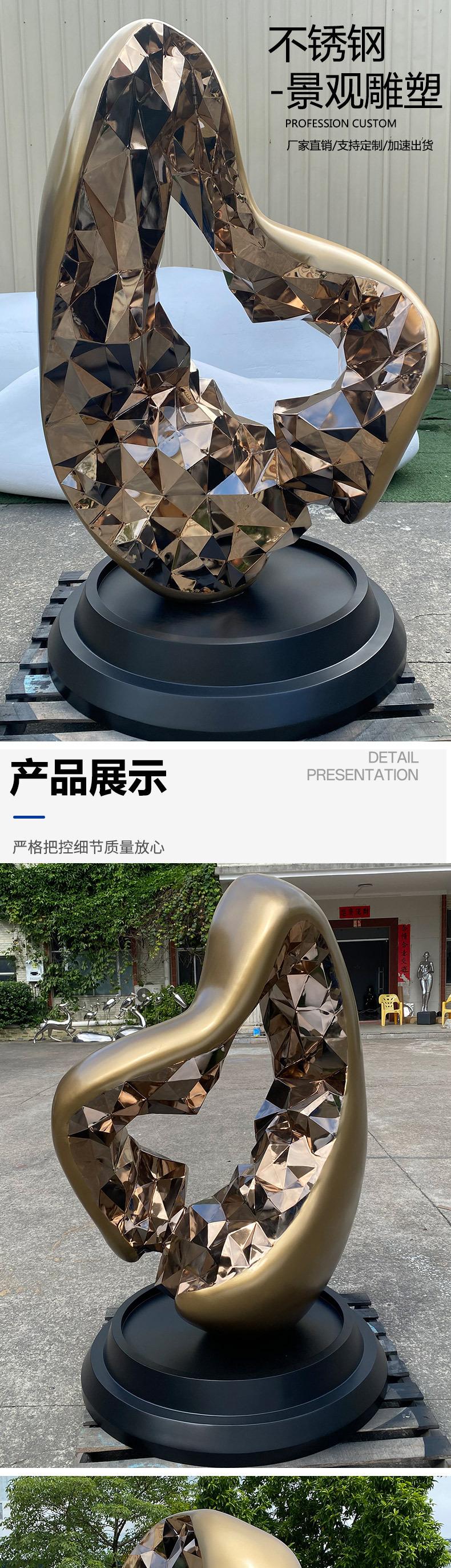 Escultura Abstracta de Diamante Romboidal de Acero Inoxidable Grande para Exterior, Paisaje, Ciudad, Departamento de Ventas, Escultura Geométrica de Superficie Cortada