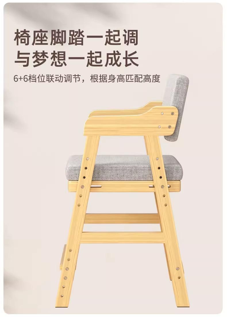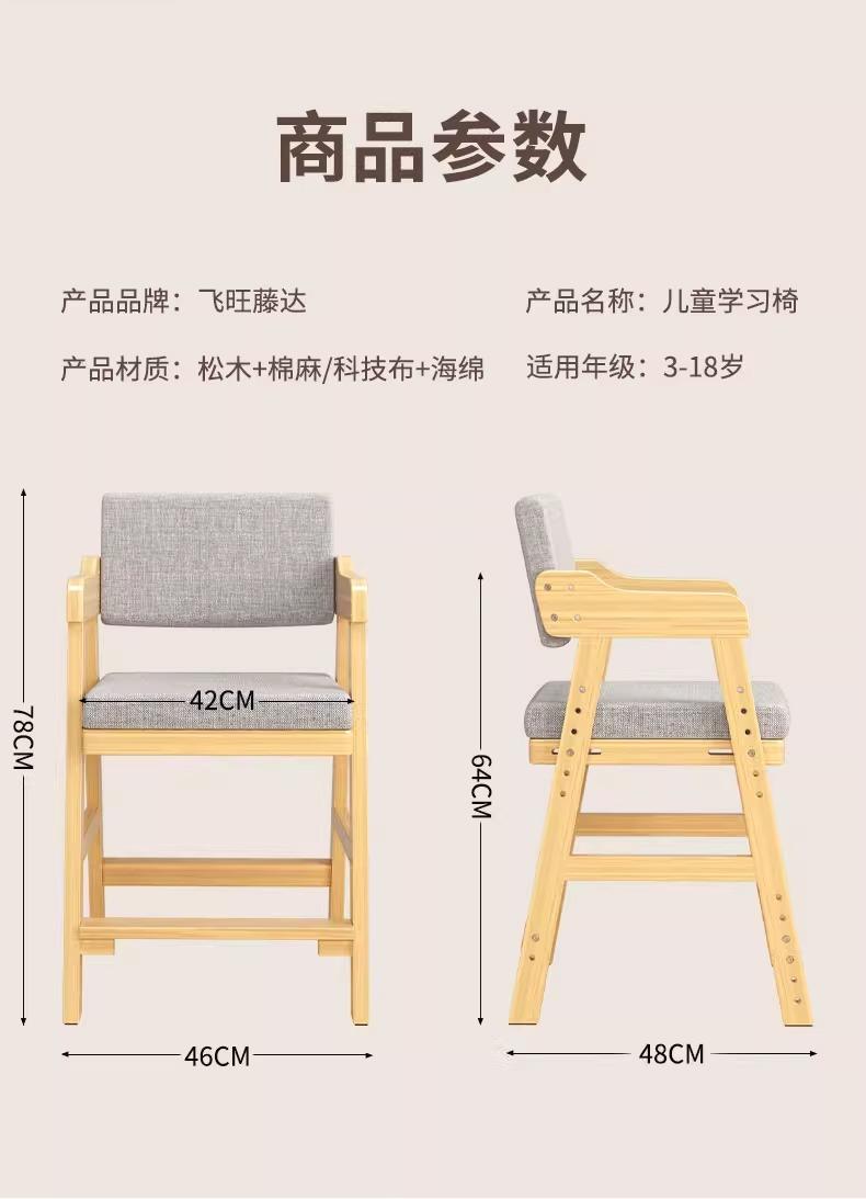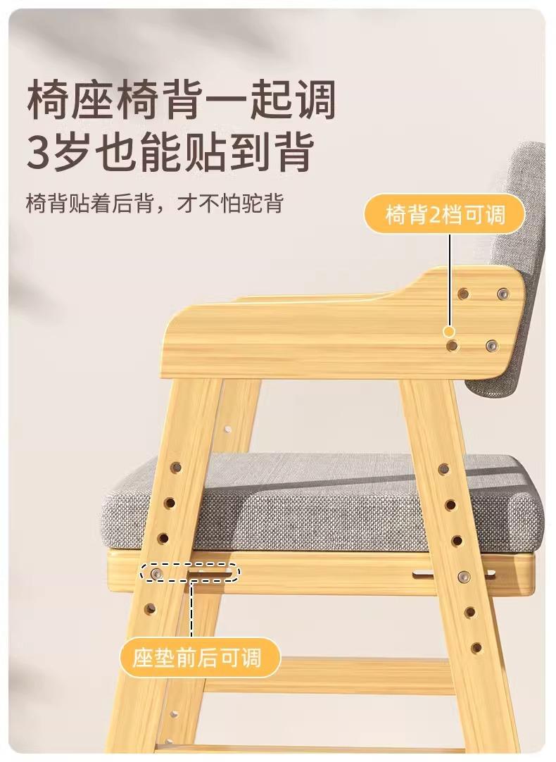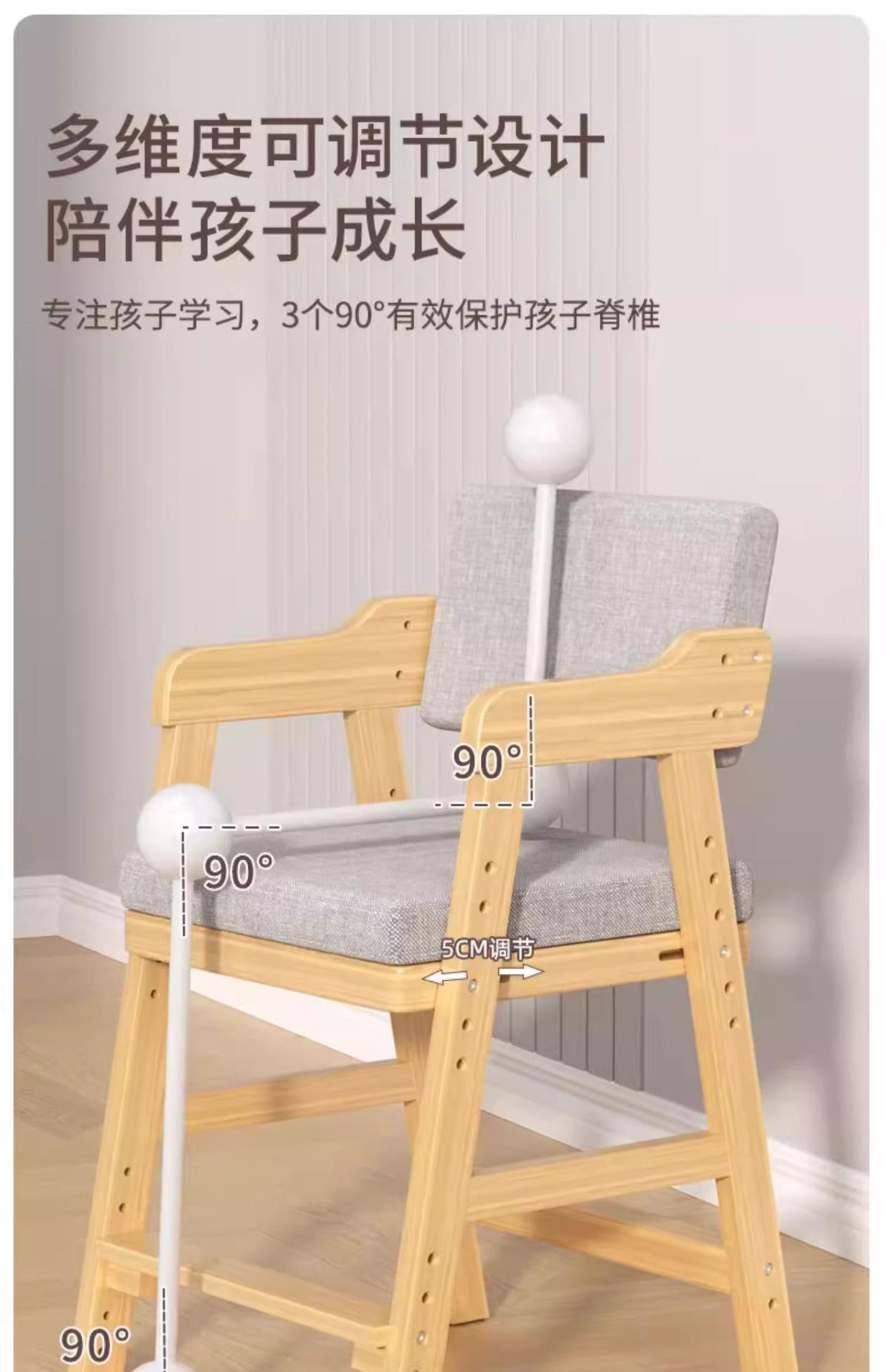 Silla de Aprendizaje para Niños Silla Especial para Escritura para Estudiantes de Primaria Elevable Ajustable Asiento de Madera Maciza Silla de Comedor para el Hogar Silla de Escritorio
