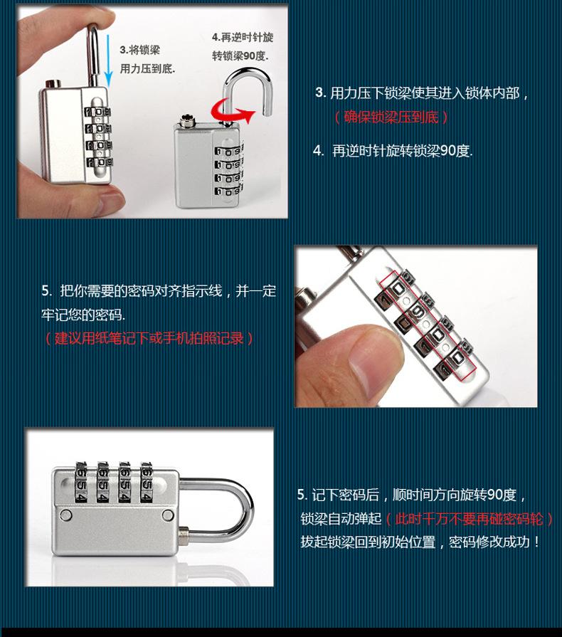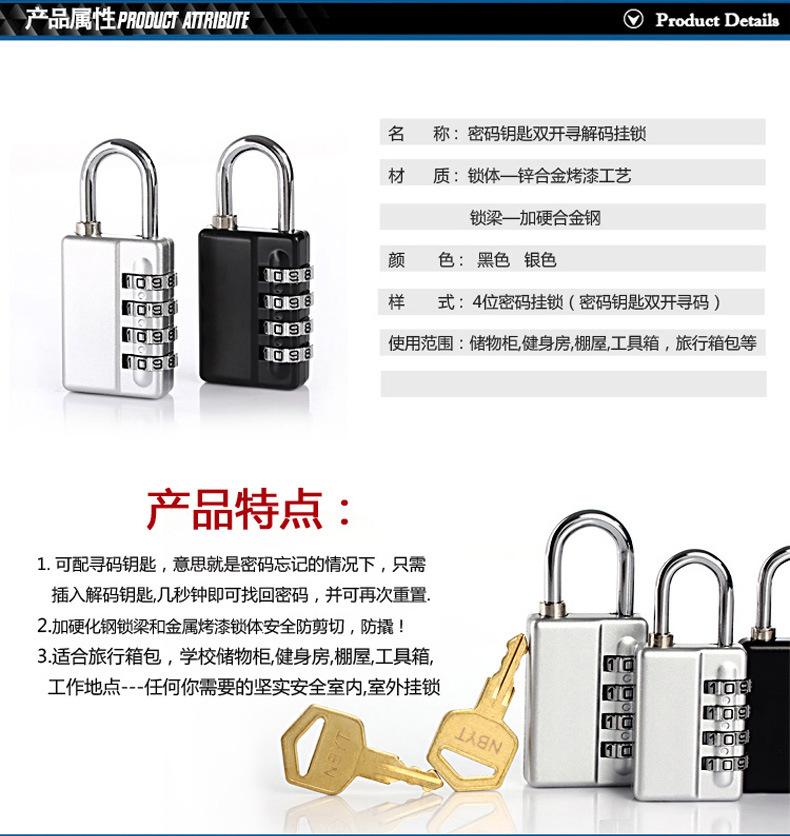 Nbyt Aleación de Zinc Doble Apertura Candado de Contraseña Candado de Gestión Taquilla de Gimnasio Candado H6305 Procesamiento y Personalización Oem