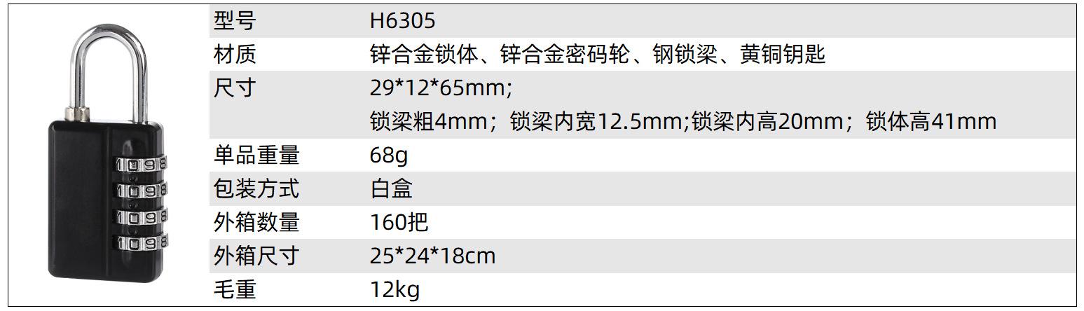 H6305 black (including 1 key), H6305 silver (including 1 key)