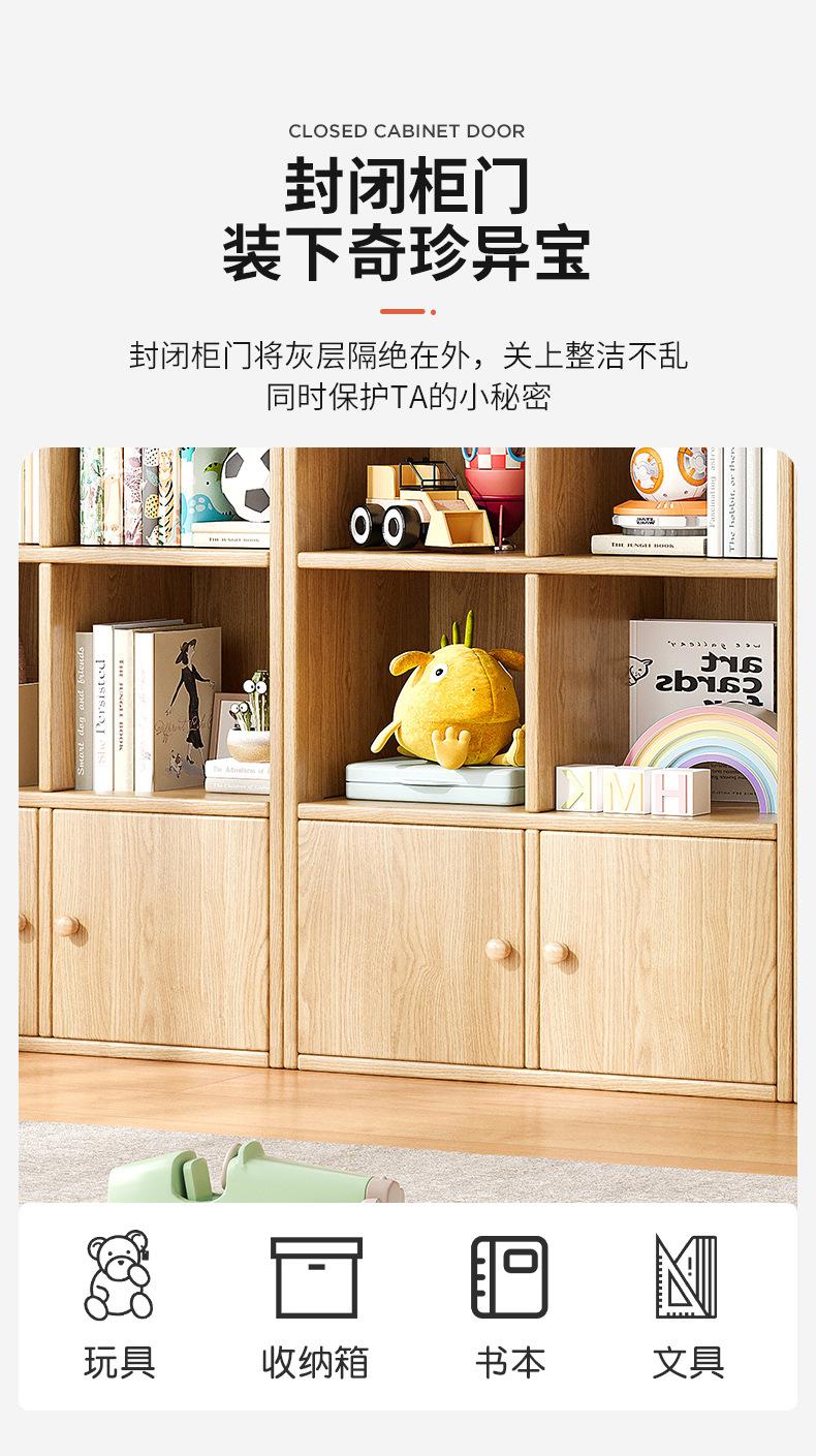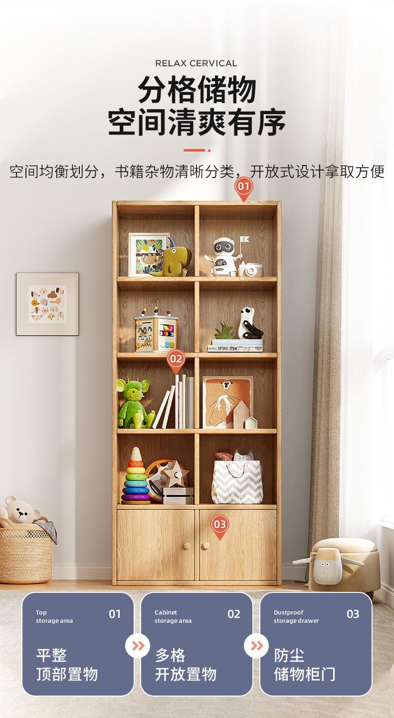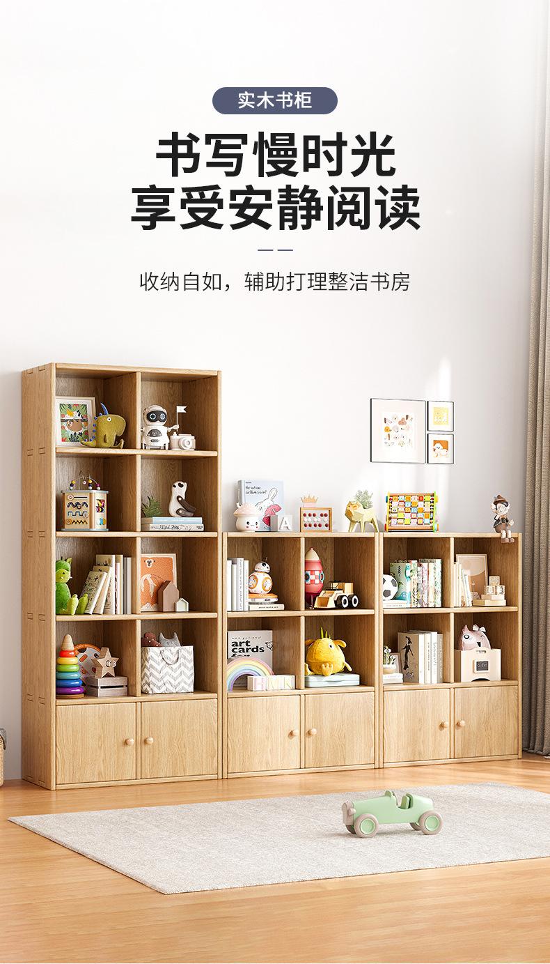 Librero Infantil de Madera Maciza de Pino, Estante de Almacenamiento, de Pie, Área de Lectura, Gabinete para Almacenamiento de Juguetes, para el Hogar, Librero a Prueba de Polvo con Puertas