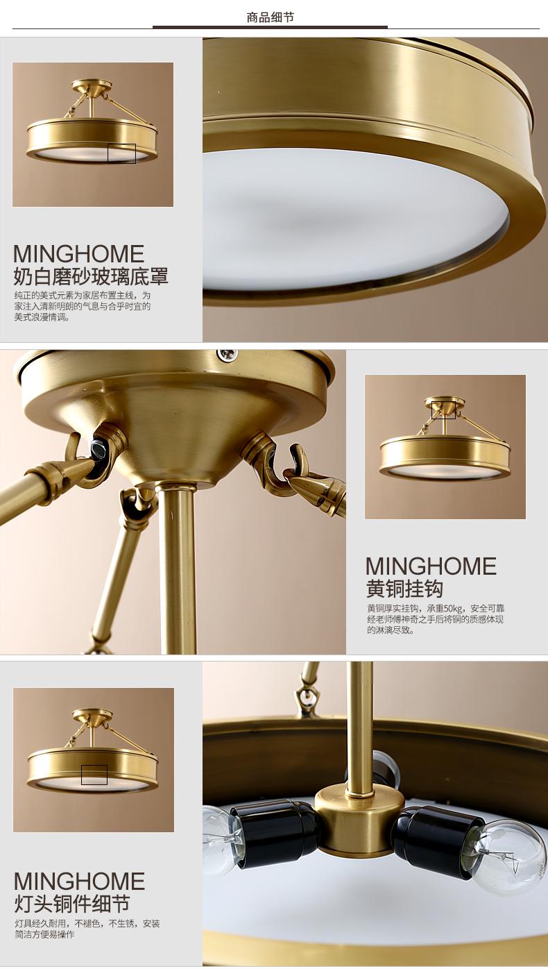 Moderna Simple Moda Personalizada Recámara Estudio Cobre Completo Sala de Estar Creativa Nórdica Villa Retro Lámpara de Techo Redonda