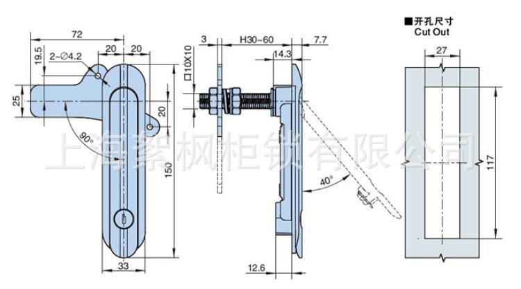 Cerradura de Gabinete Yueqing Ebara: AB401-1L Cromo Arenado Cerradura Plana