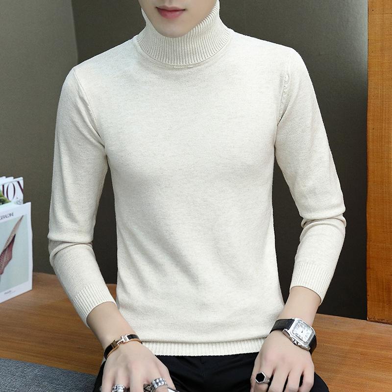 Nuevo suéter casual para hombre de comercio exterior transfronterizo, color sólido, simple, ajustado, cuello alto, talla grande, suéter de moda para hombre