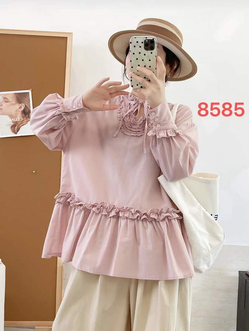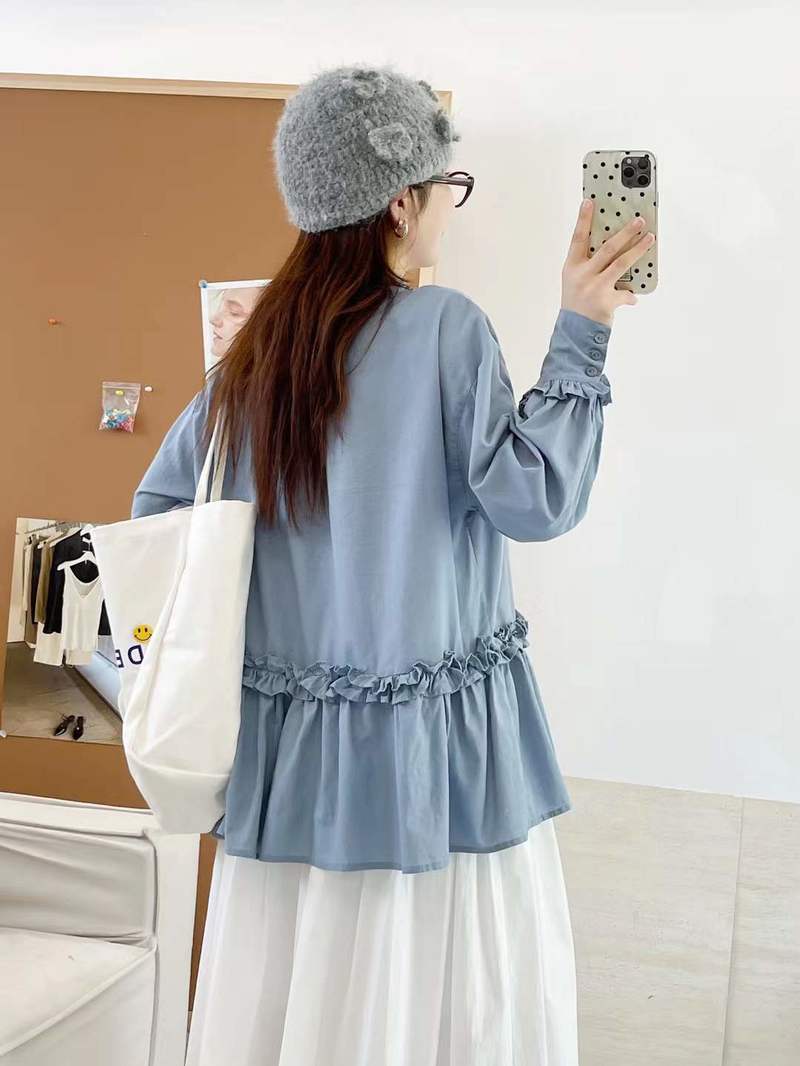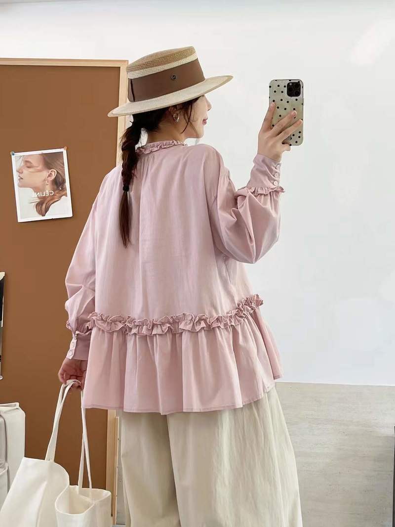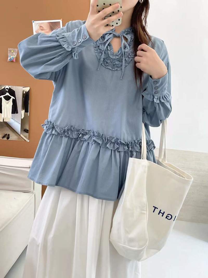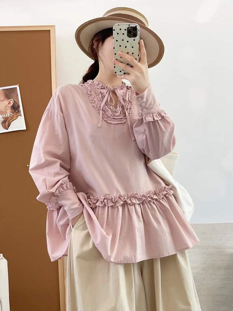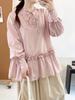 Otoño 2025 Japonés Fresco Color Sólido Cordones Suelto Mujer Jersey Camisa Manga Larga Top