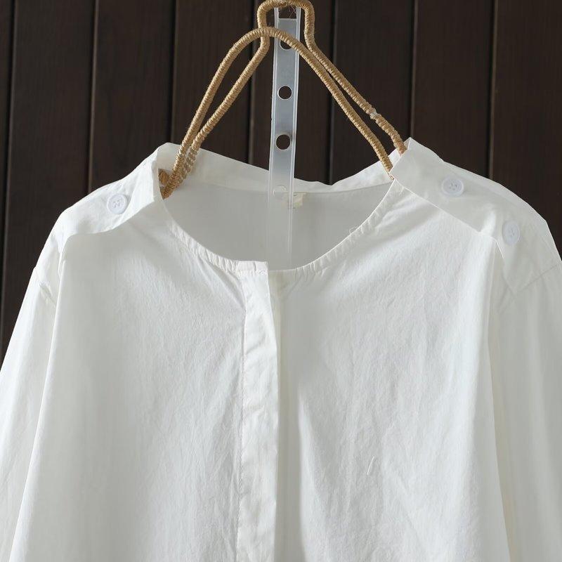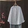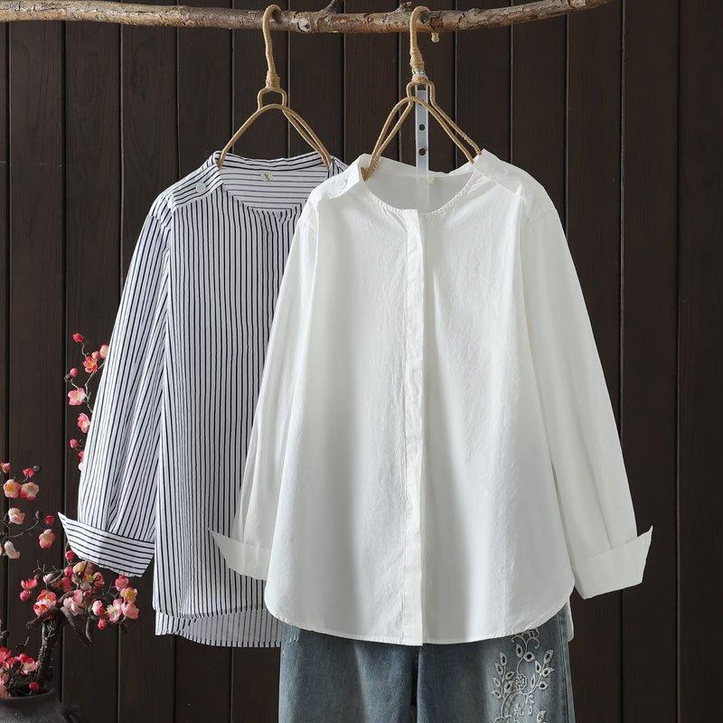 Compra Ropa de Otoño 2025 Estilo Japonés Fresco Cuello Alto Botón en el Hombro Rayado Suelto Cárdigan de Mujer Camisa de Manga Larga al por mayor en Joom.pro