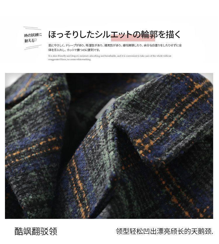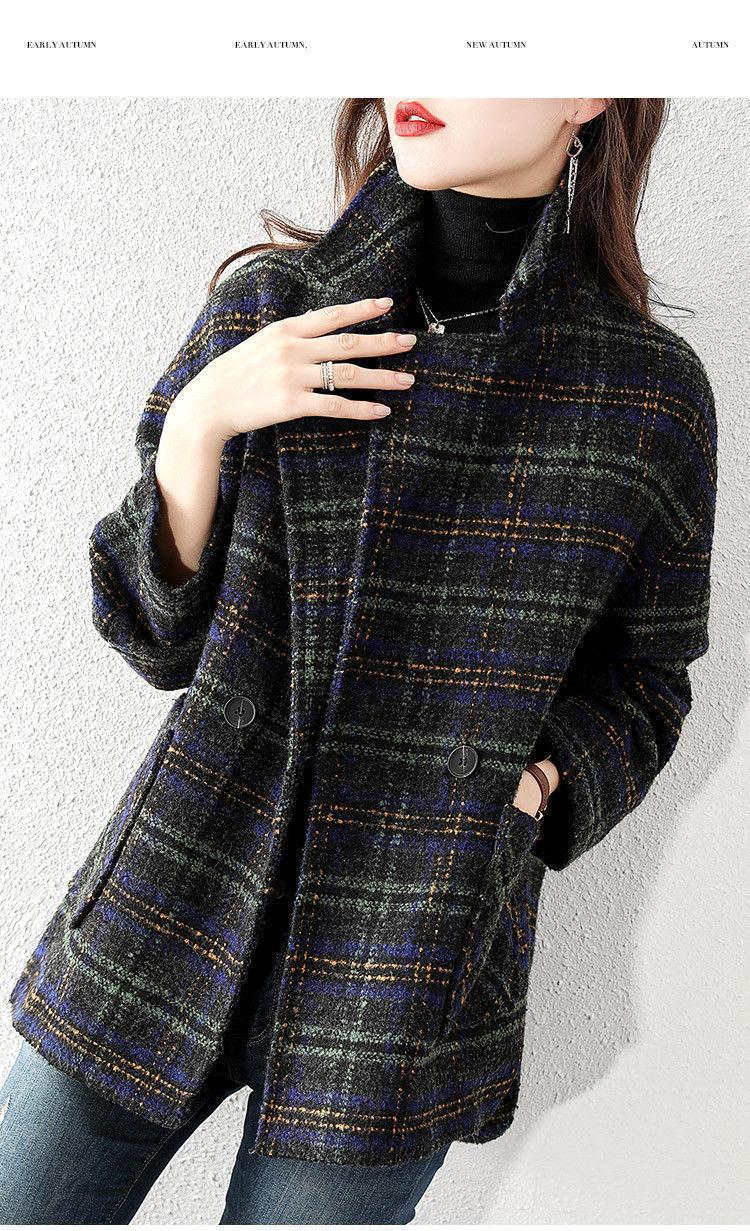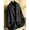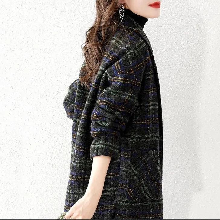 Traje a cuadros Abrigo de lana 2025 Otoño/Invierno para mujer Estilo coreano Suelto Retro a cuadros Abrigo de lana de longitud media Comercio exterior