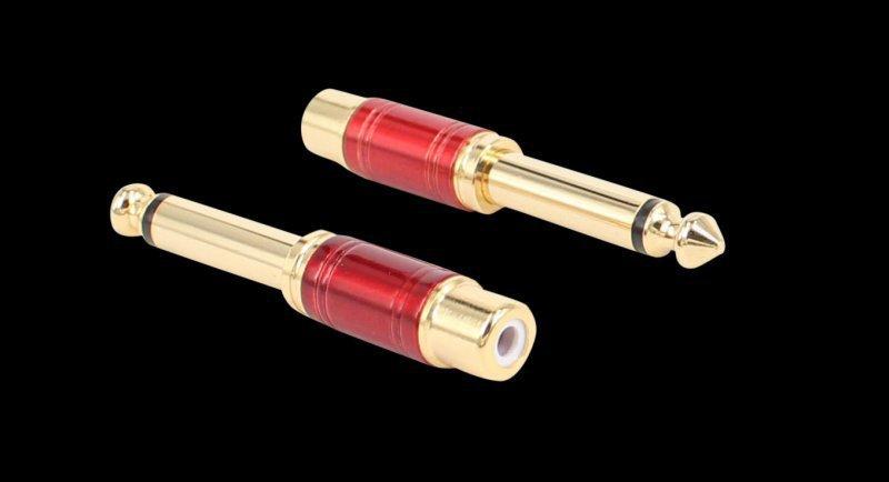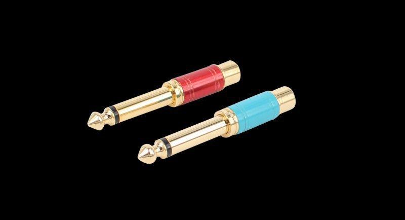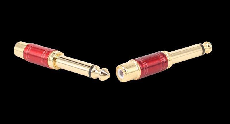 Función del producto: Este adaptador se utiliza para convertir la interfaz de 6.35 mm de equipos de audio, micrófonos, mezcladoras, guitarras eléctricas, teclados electrónicos, etc. en una salida de señal RCA hembra (loto hembra).