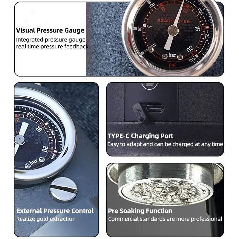 Manómetro visible: Los cambios de presión se pueden ver claramente y la presión se puede ajustar manualmente para satisfacer diferentes requisitos de gusto.