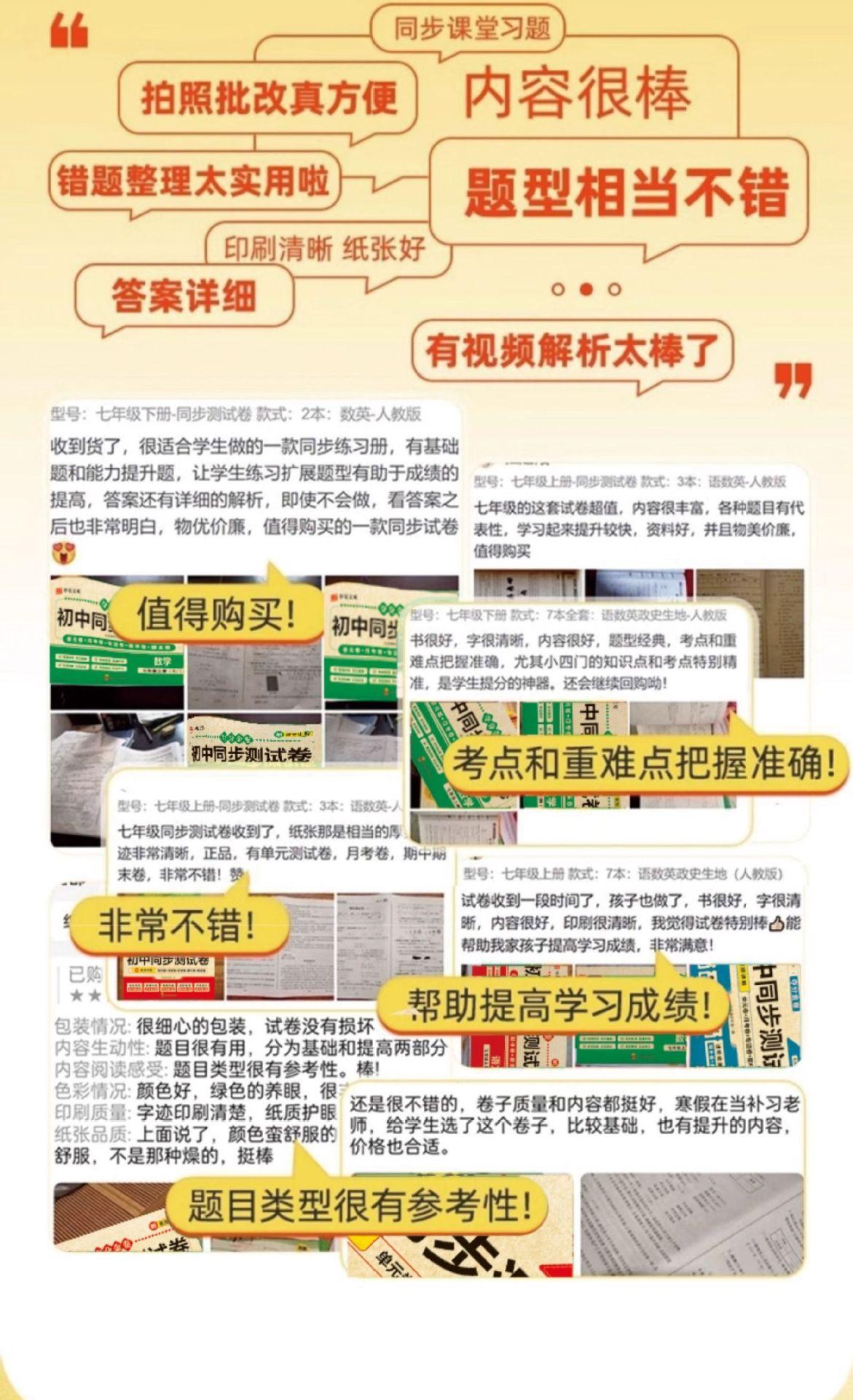 Compra Un conjunto completo de exámenes sincronizados para el primer volumen del séptimo grado, edición de Educación Popular, preguntas de chino, matemáticas, inglés, política, historia, geografía y biología al por mayor en Joom.pro