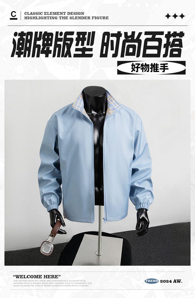 Comercio exterior transfronterizo 2025 chaqueta de cuello alto para primavera y otoño para hombre, nueva parte superior holgada, patchwork de cuadros, ropa exterior juvenil