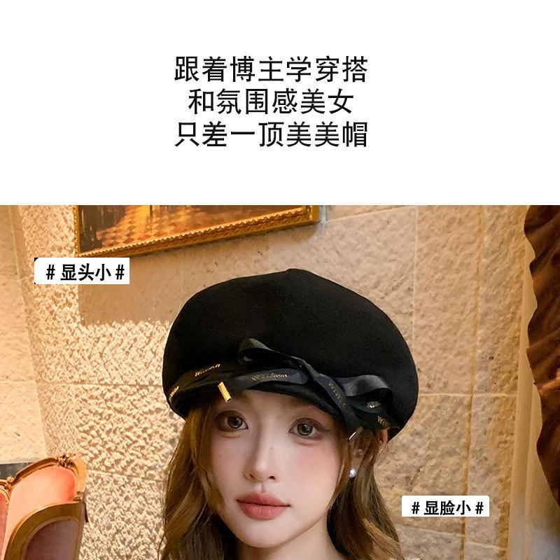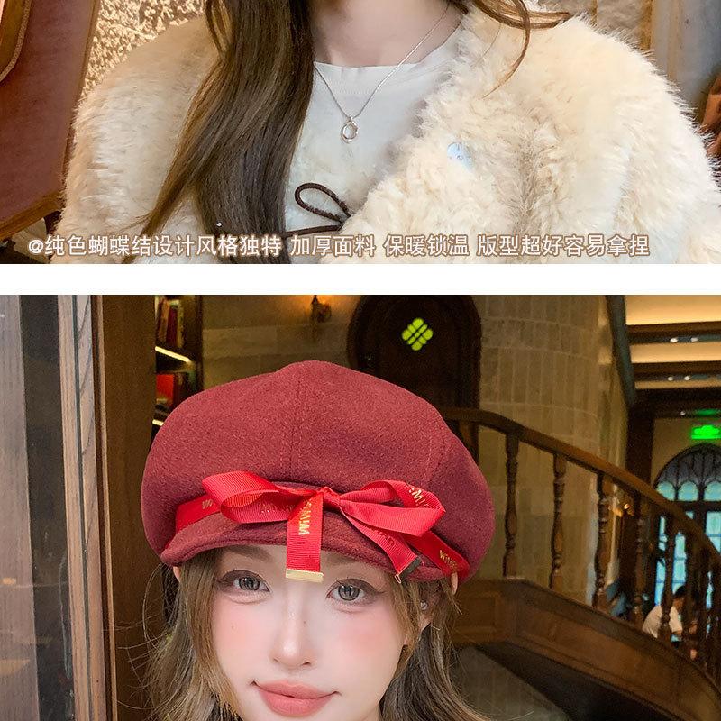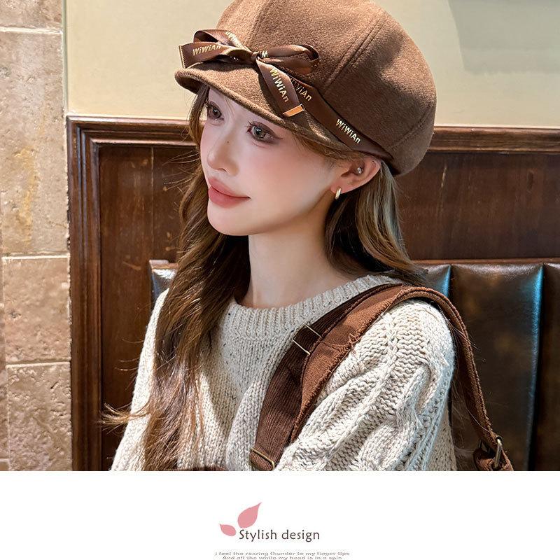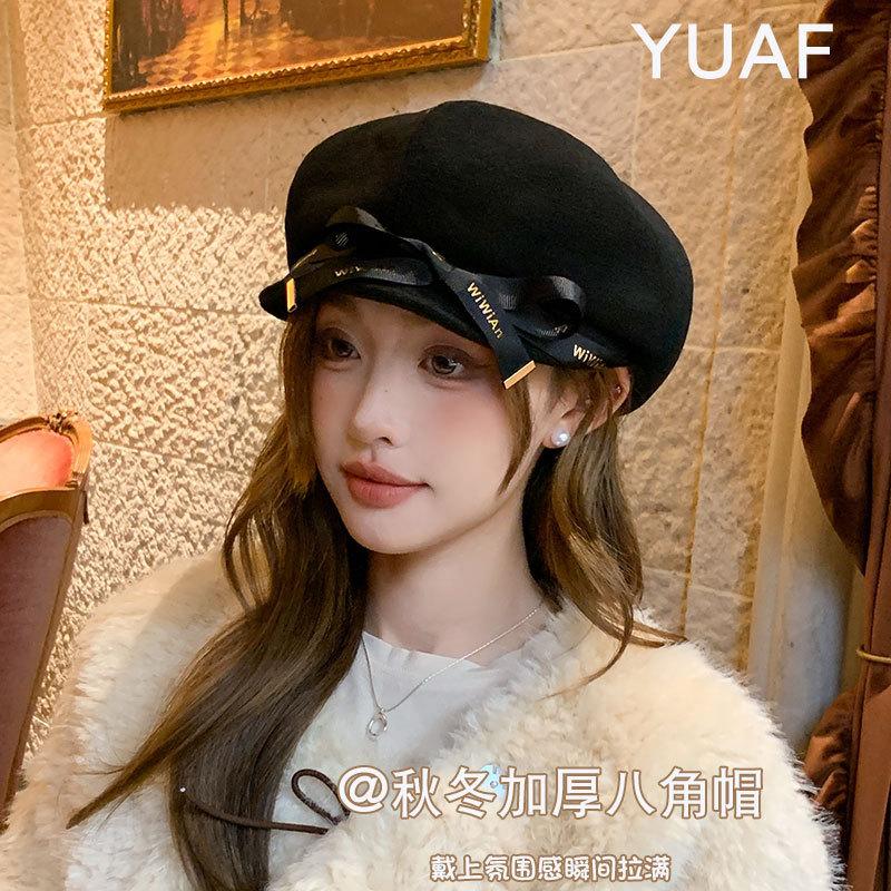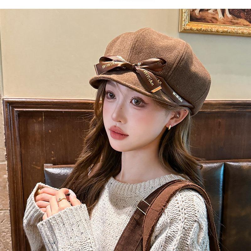 Otoño e Invierno Boina Dulce de Lazo para Mujer Estilo Similar de Celebridad de Internet Japonesa Hace el Rostro Más Pequeño Sombrero de Pintor Moda Casual Sombrero Octogonal