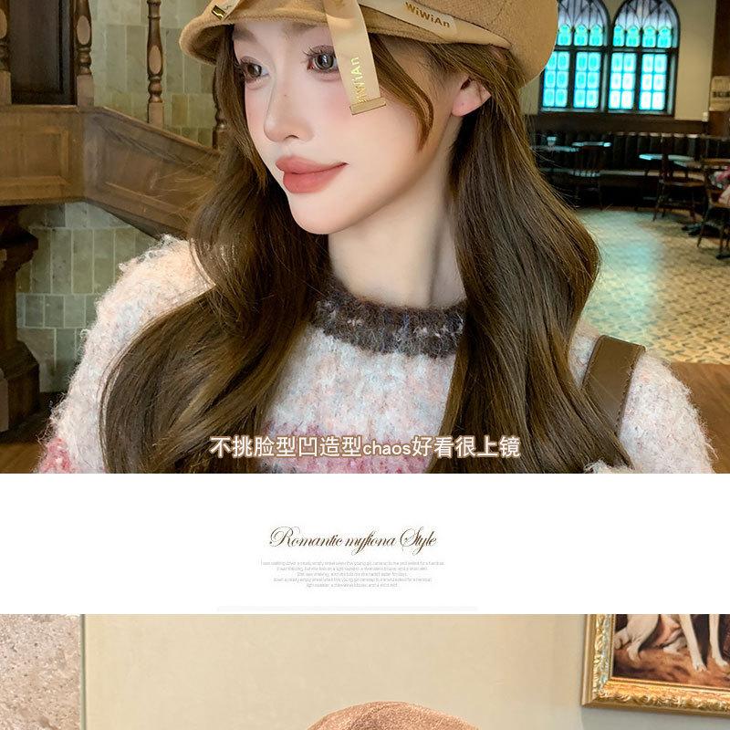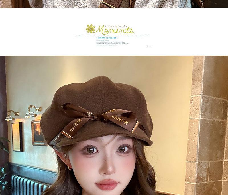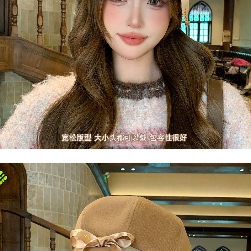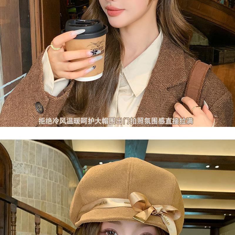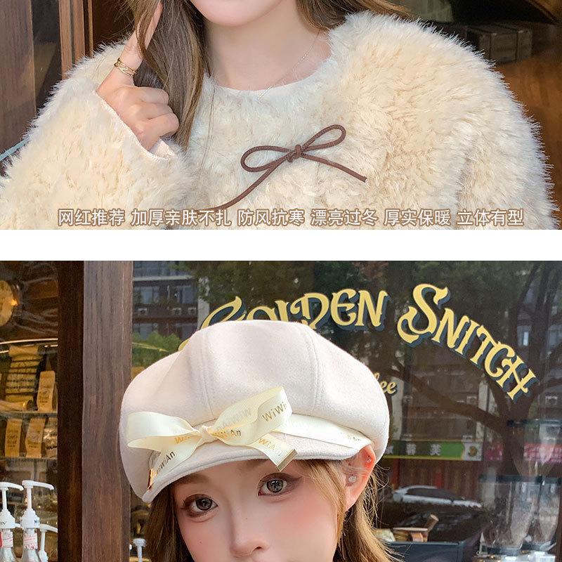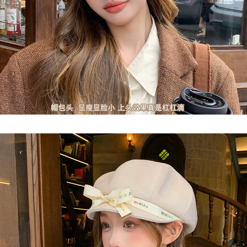 Otoño e Invierno Boina Dulce de Lazo para Mujer Estilo Similar de Celebridad de Internet Japonesa Hace el Rostro Más Pequeño Sombrero de Pintor Moda Casual Sombrero Octogonal