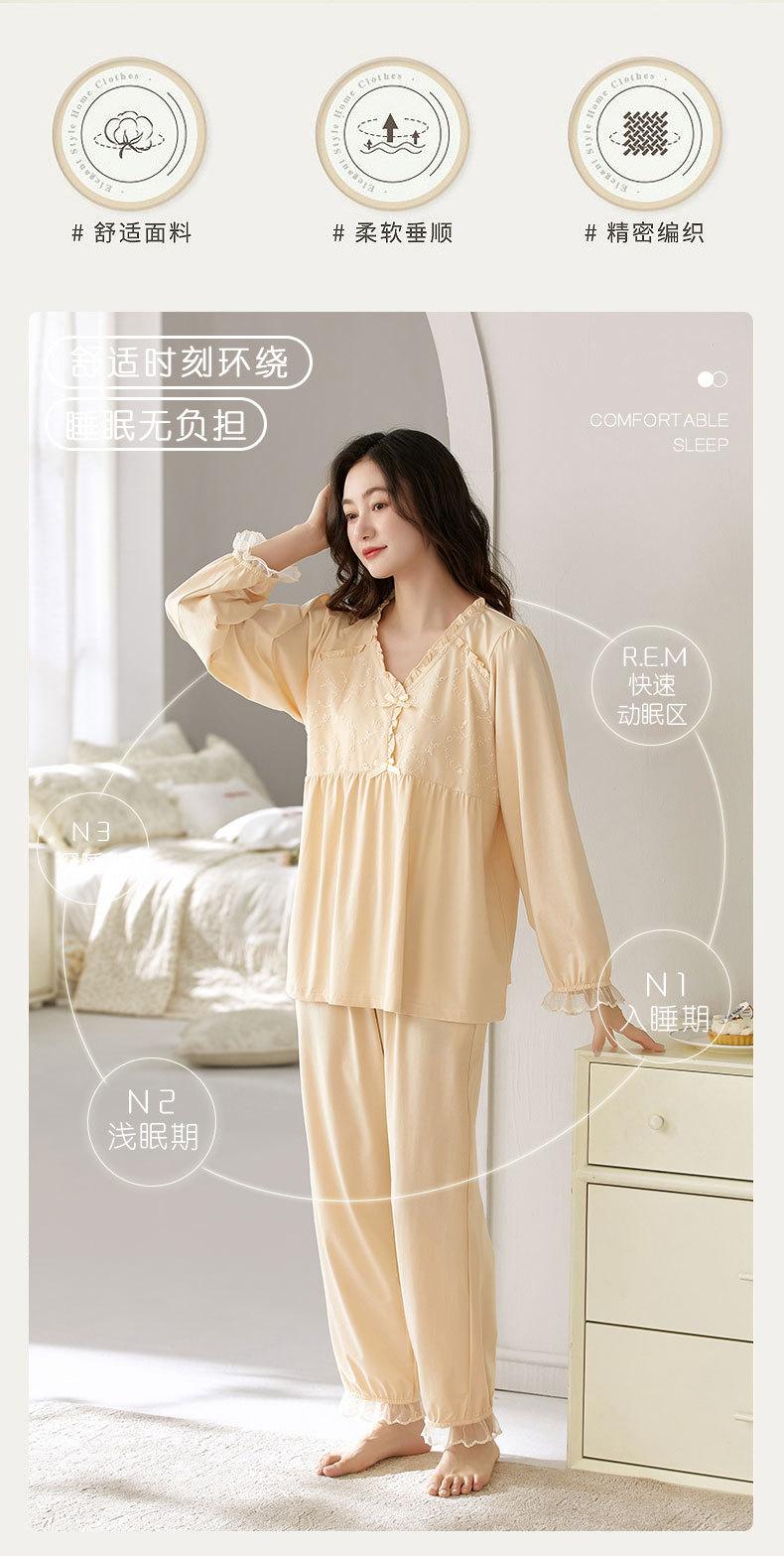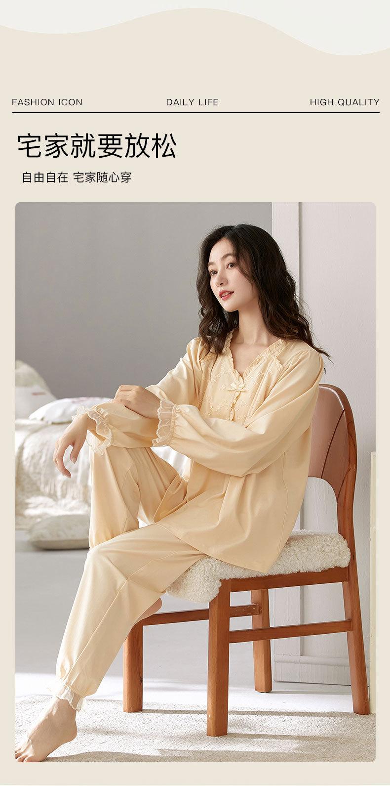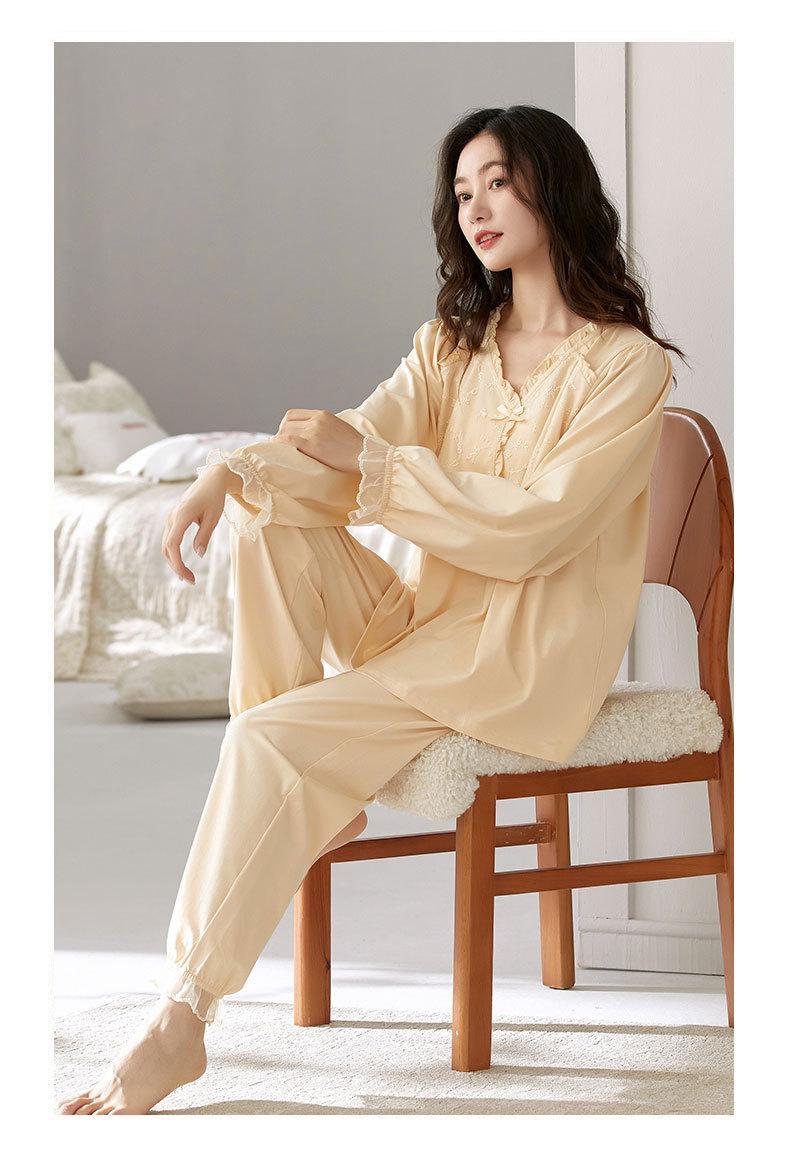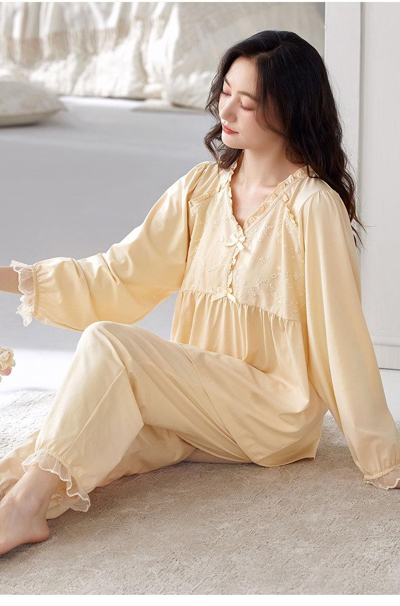 Compra Pijamas de Primavera y Otoño para Mujer Se Pueden Usar Afuera Cómodos Algodón Lycra Amigable con la Piel Manga Larga Pantalón Largo Estilo Dulce y Delicado Conjunto para Estar en Casa al por mayor en Joom.pro