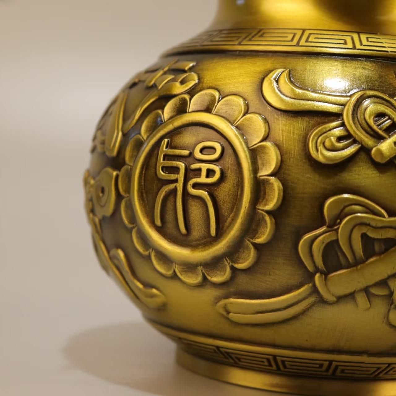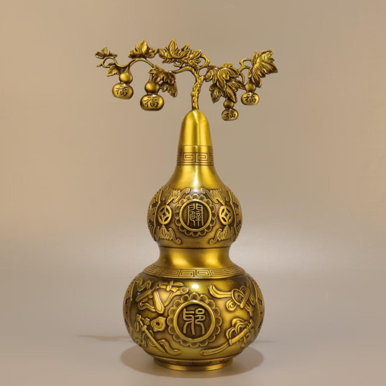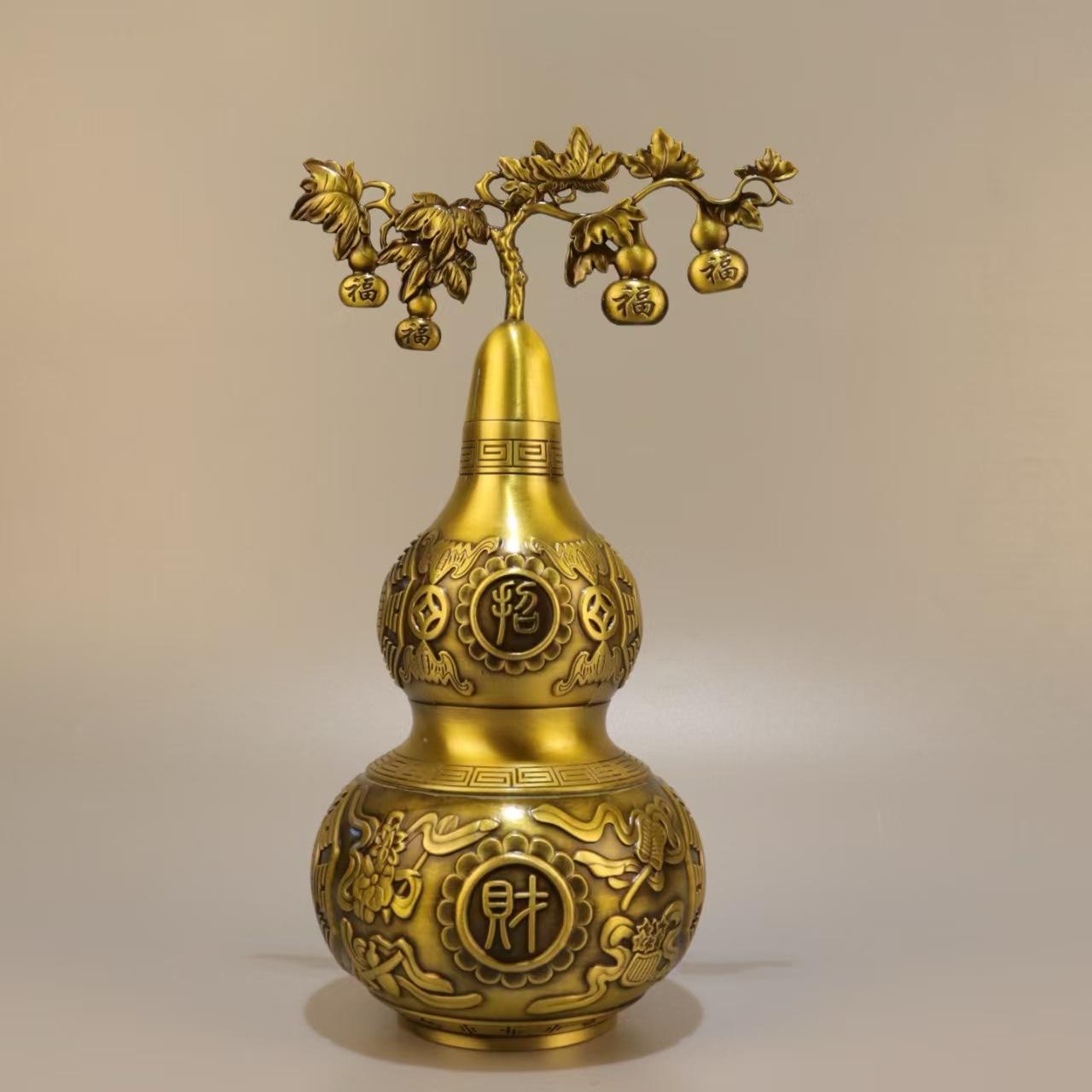 Adornos de Calabaza de Latón Puro Latón para Escritorio Interior Ocho Tesoros Tapa Abierta Hueco Cobre Tianyi Fulu Artesanías