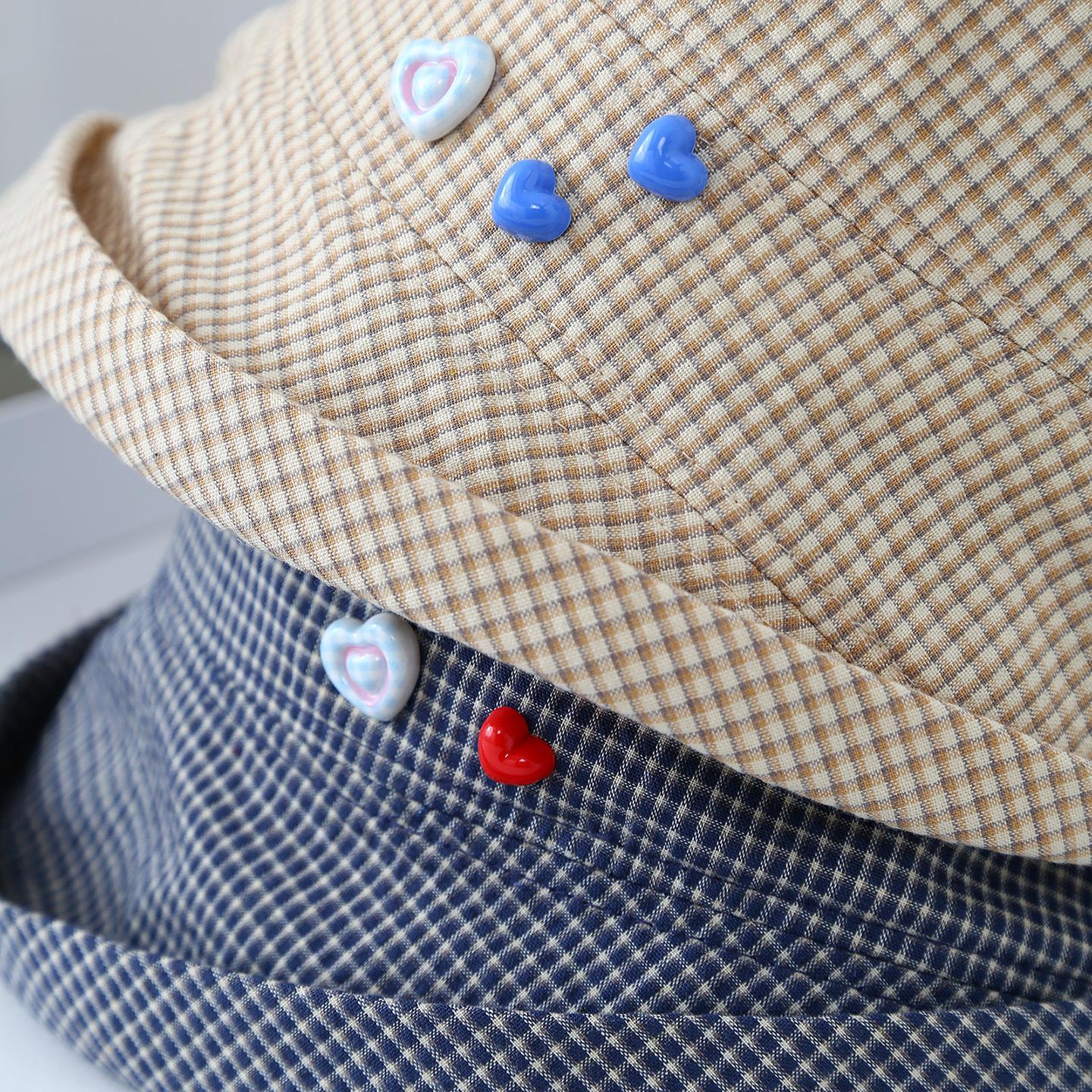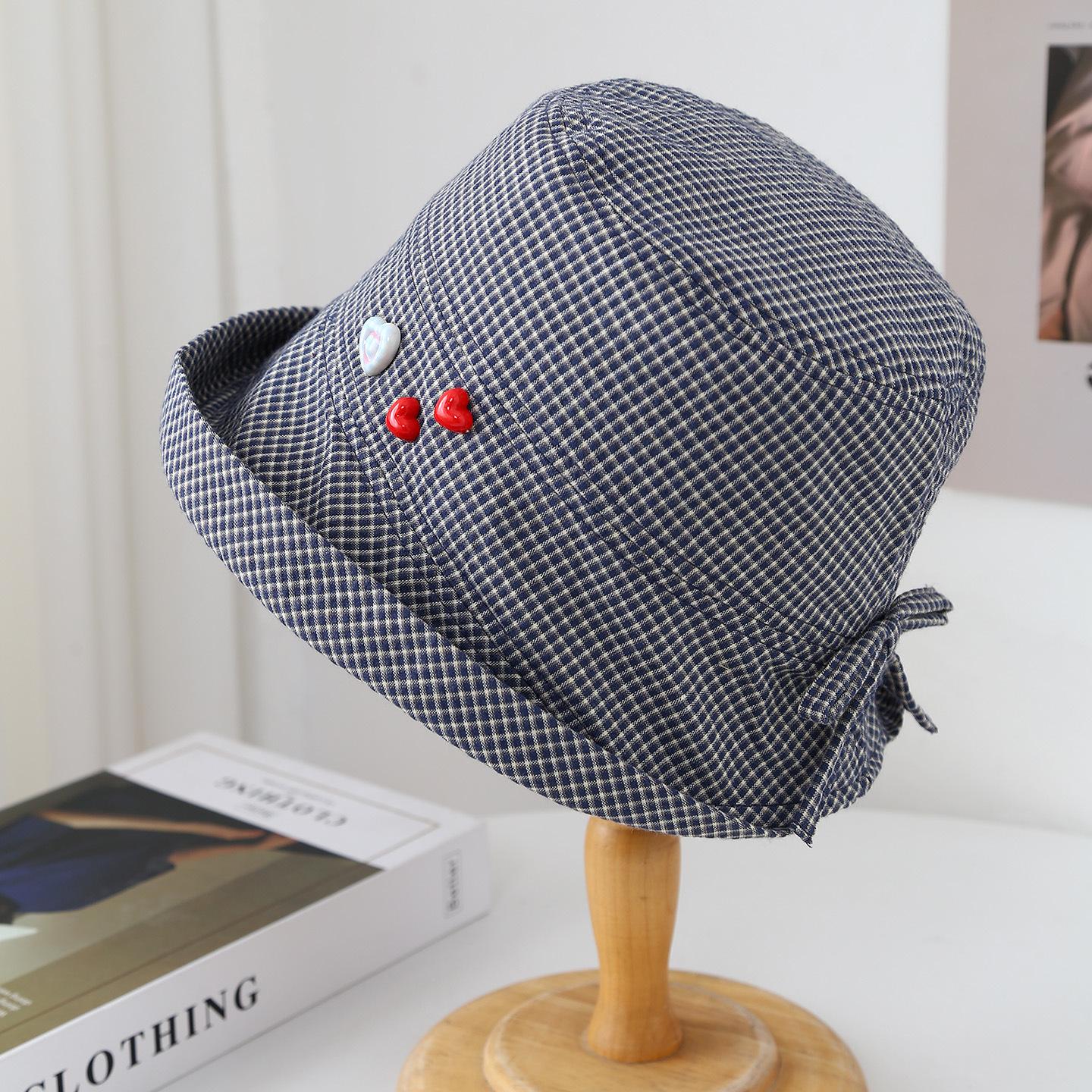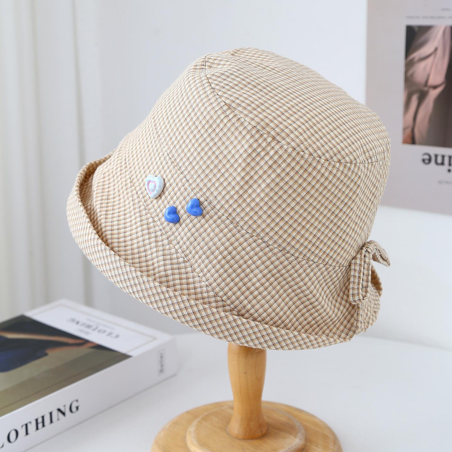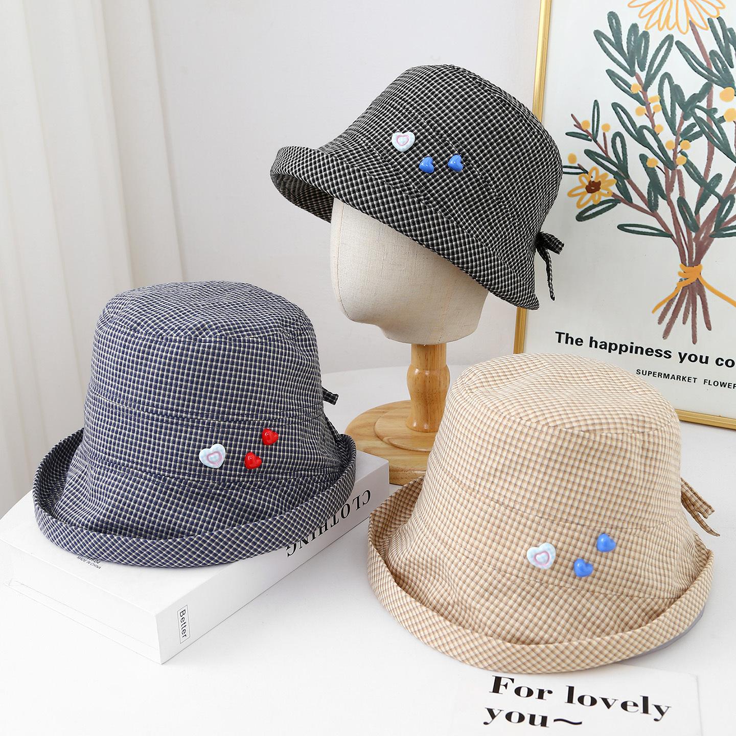 Sombrero de Pescador a Cuadros Japonés y Coreano de Ala Enrollada para Mujer Primavera y Verano 2025 Estilo Ins Sombrero Bucket Protección Solar Sombrero de Sol Corazón