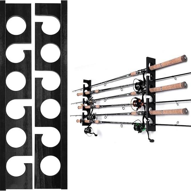 Organizador de Cañas de Pescar Estante de Gran Capacidad Montado en la Pared Estante para Equipo de Pesca Caña Red de Aterrizaje Estante de Exhibición Madera Maciza Estante para Equipo de Pesca