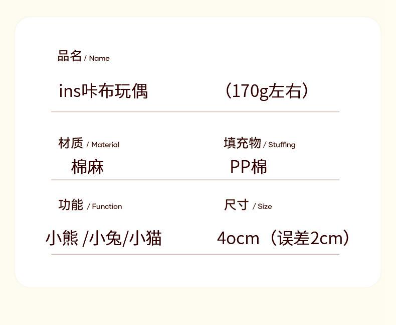 Muñeca ins cabu transfronteriza conejo gatito oso peluche muñeca dormir