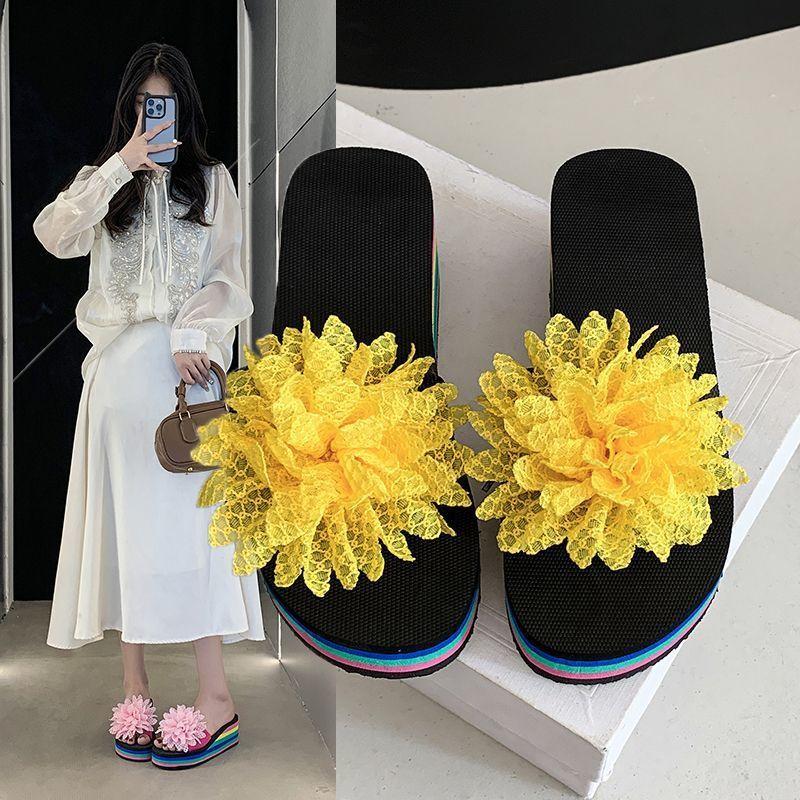 Verano 2025 Nuevo Estilo Caliente Dulce Zapatillas de Flores de Alto Valor Zapatos de Moda para Mujer Antideslizantes Ligeras Sandalias de Playa