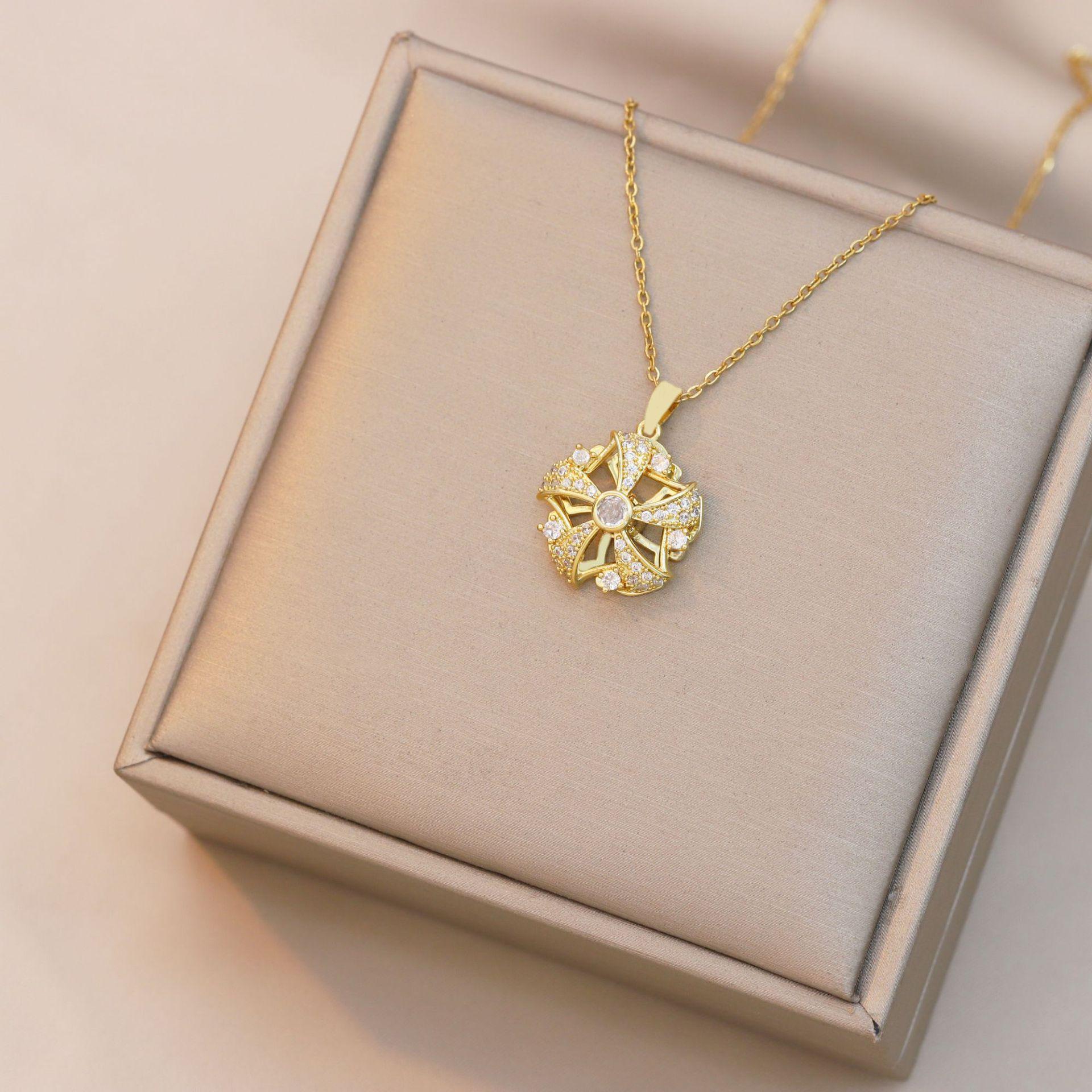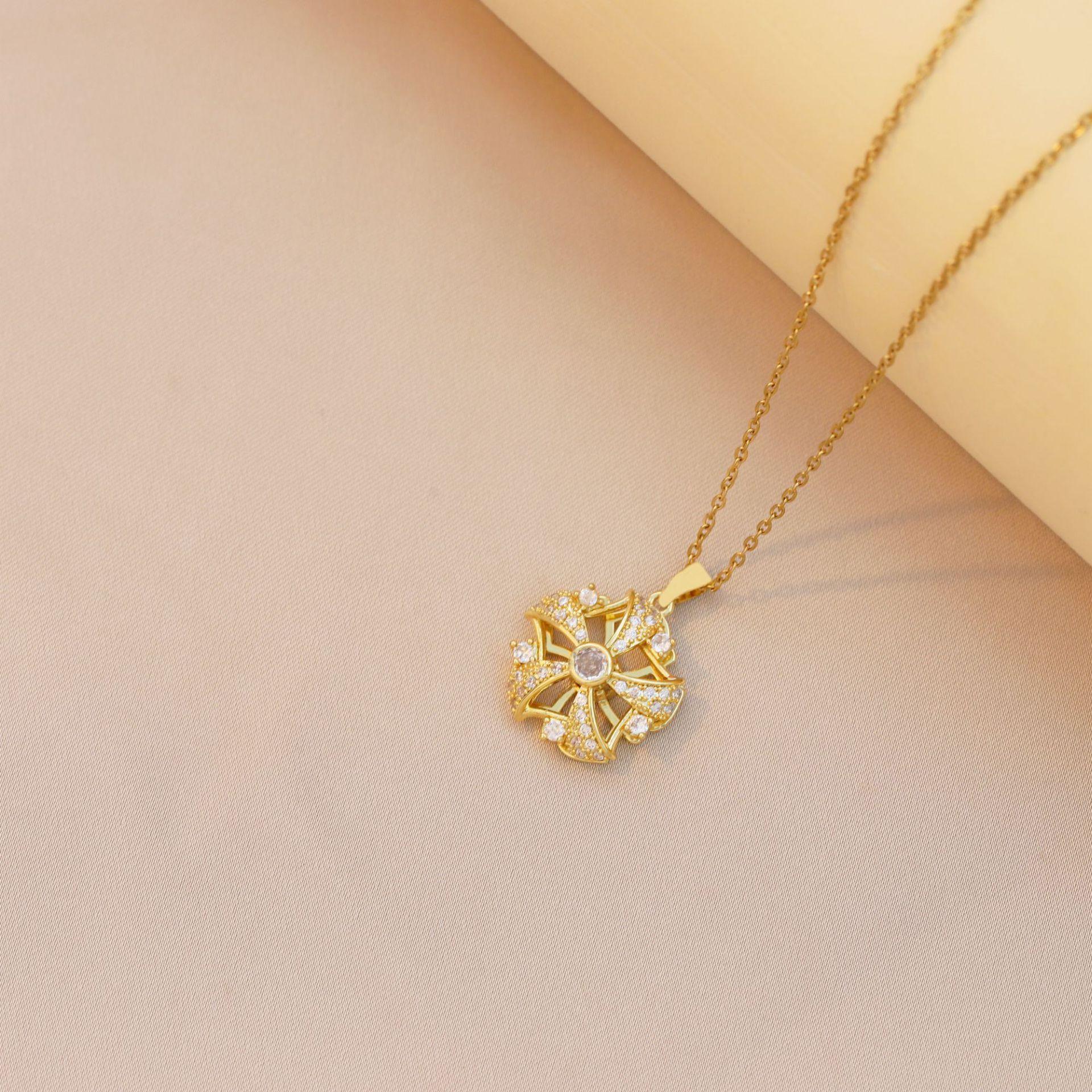 Collar para Mujer Collar de Flor Giratorio Transfronterizo Diseño Europeo y Americano Nuevo Acero de Titanio Cadena de Clavícula Colgante Accesorios de Joyería para Mujer