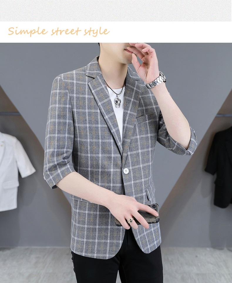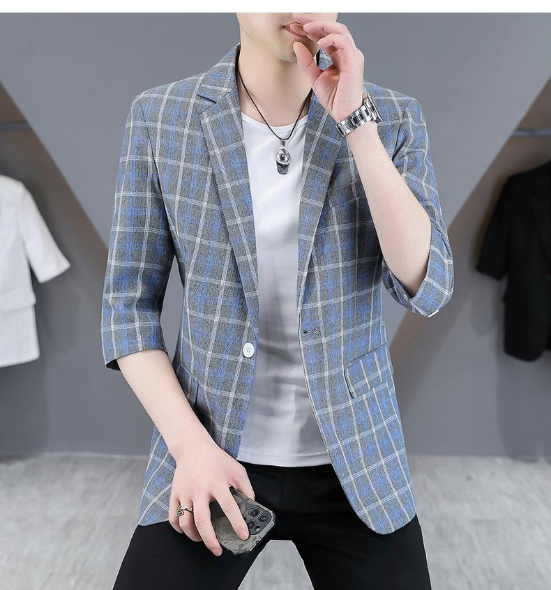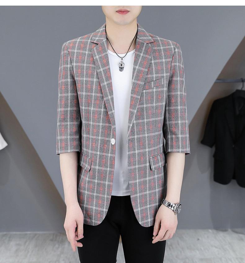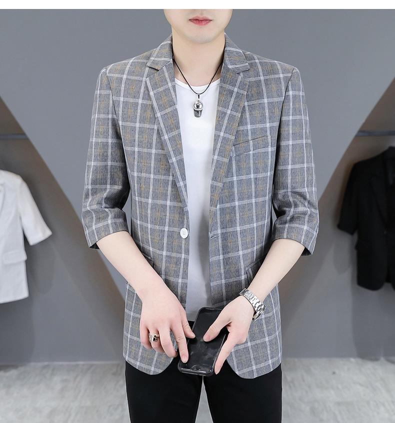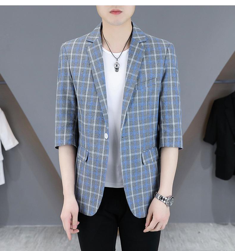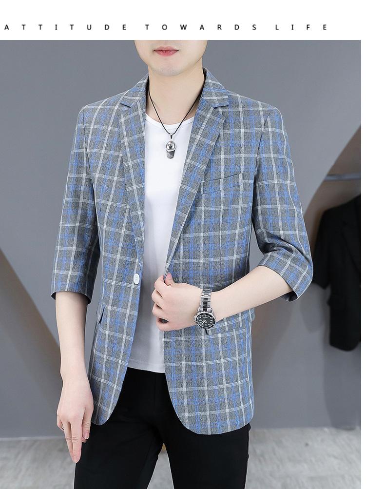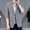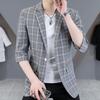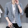 Nuevo Traje de Cuadros de Verano de Manga Media para Hombre Juvenil Slim-fit Traje Pequeño Chaqueta Top Occidental Simple