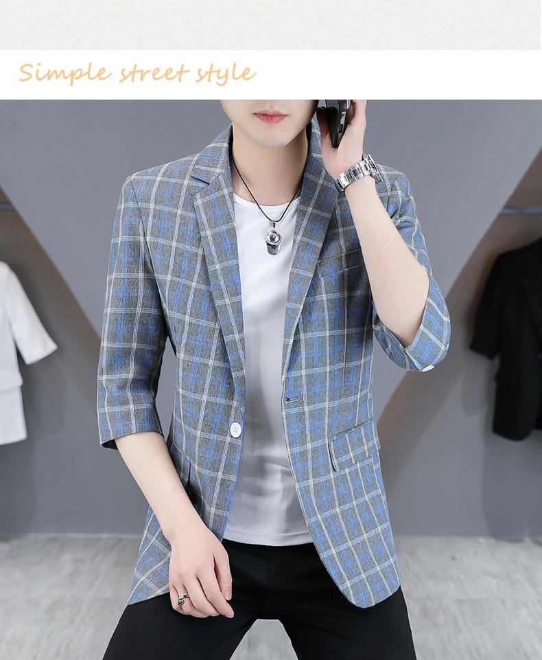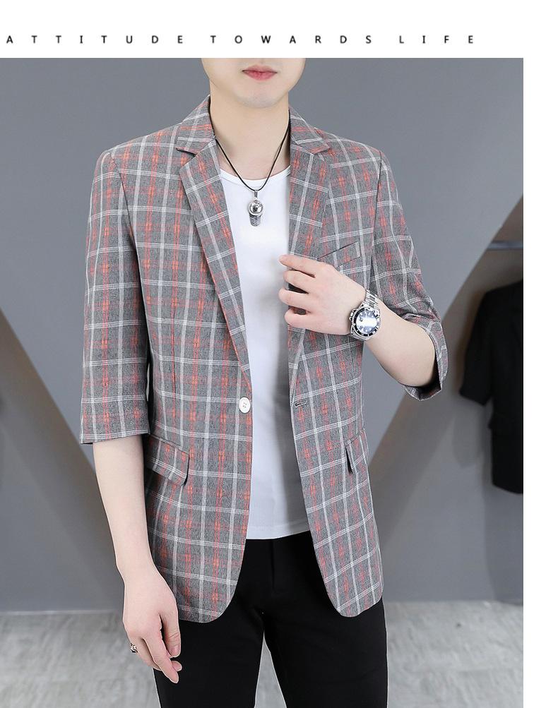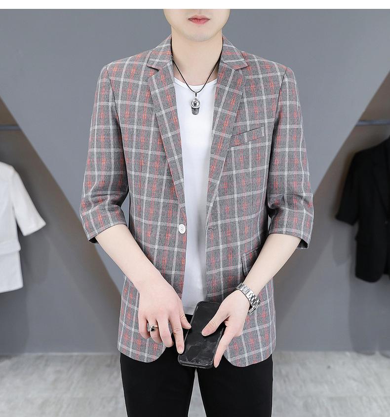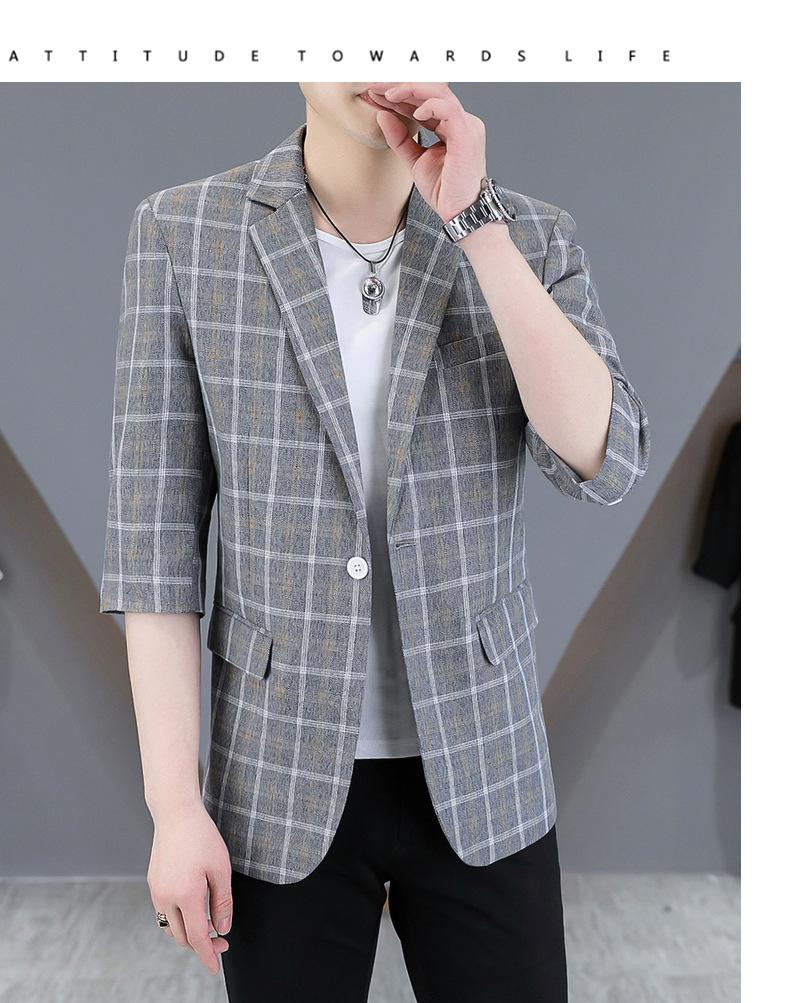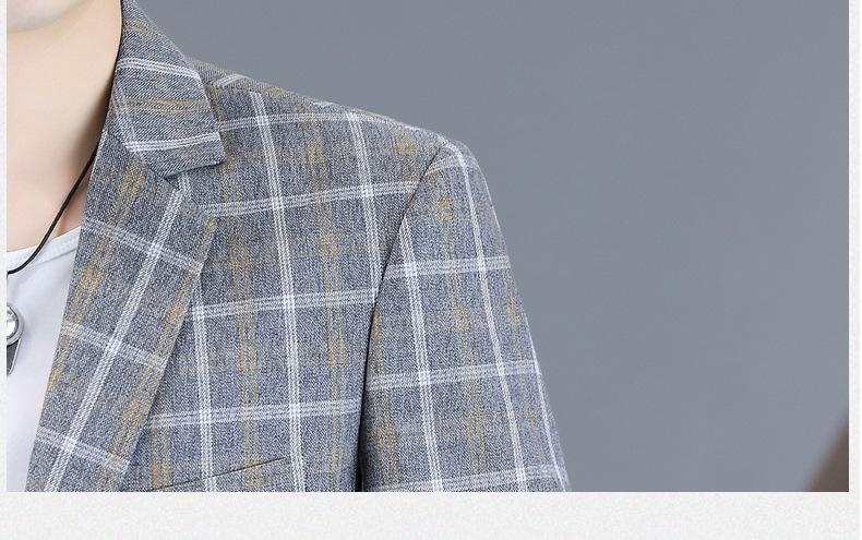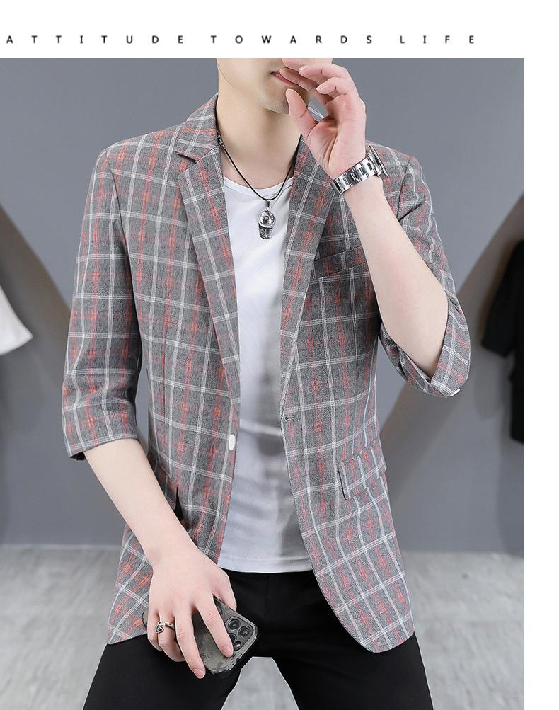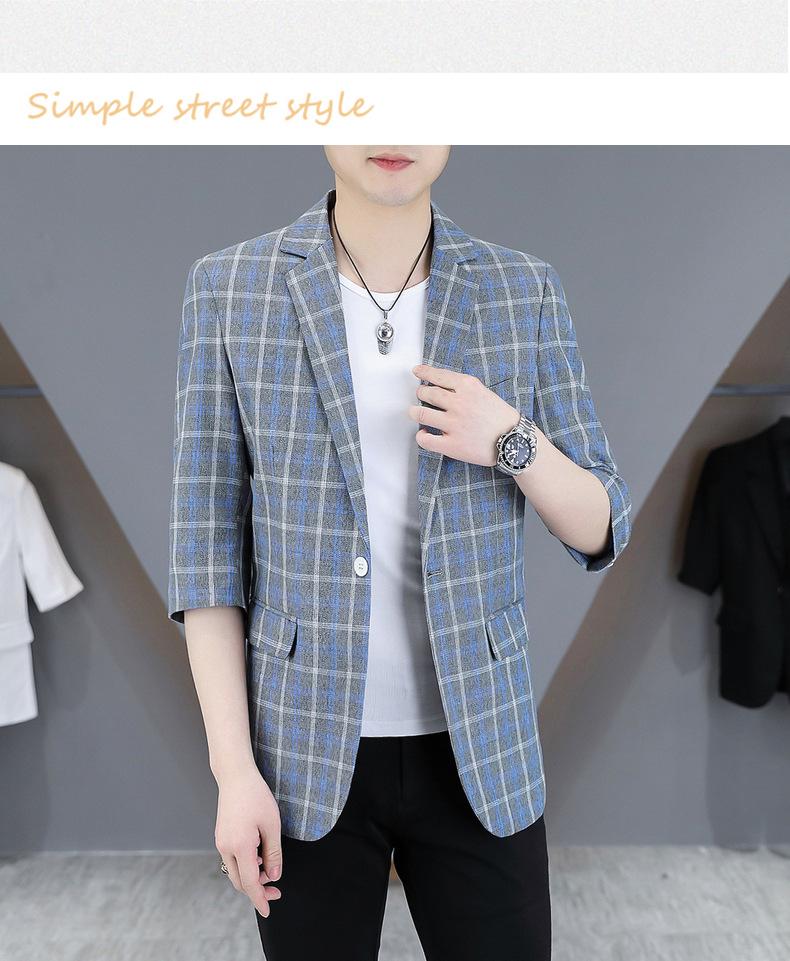 Nuevo Traje de Cuadros de Verano de Manga Media para Hombre Juvenil Slim-fit Traje Pequeño Chaqueta Top Occidental Simple