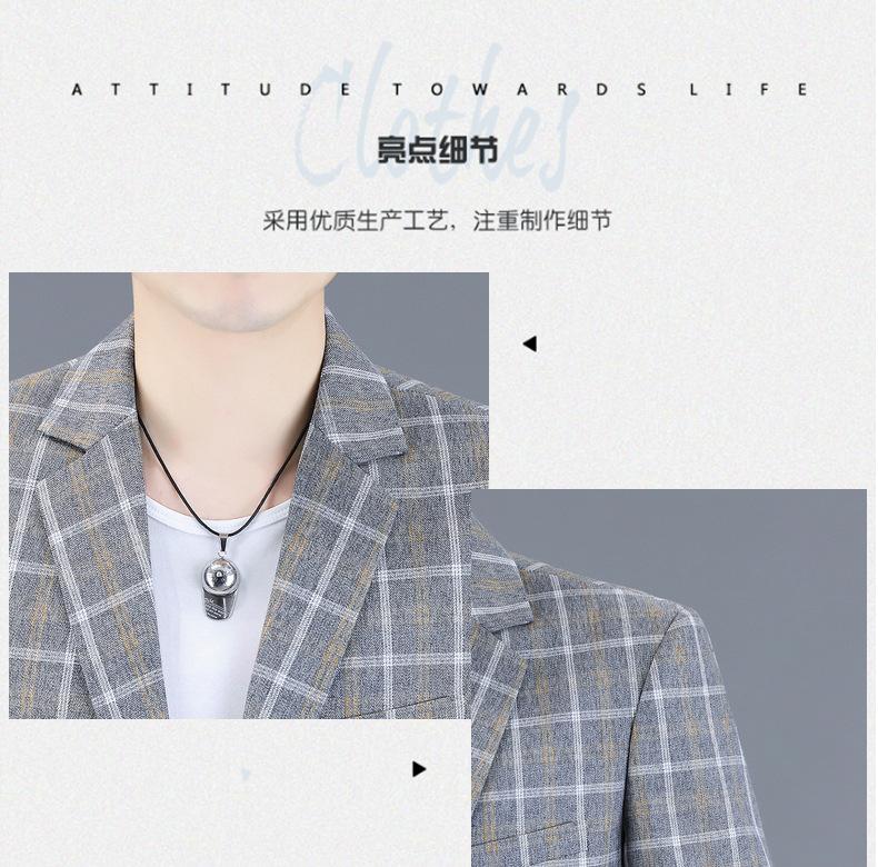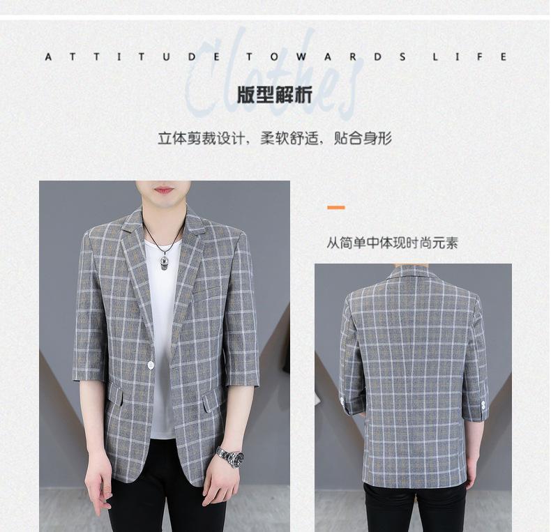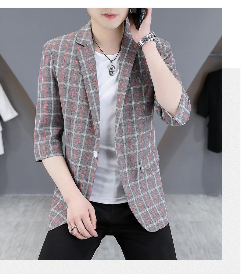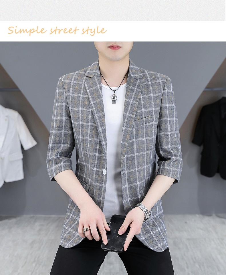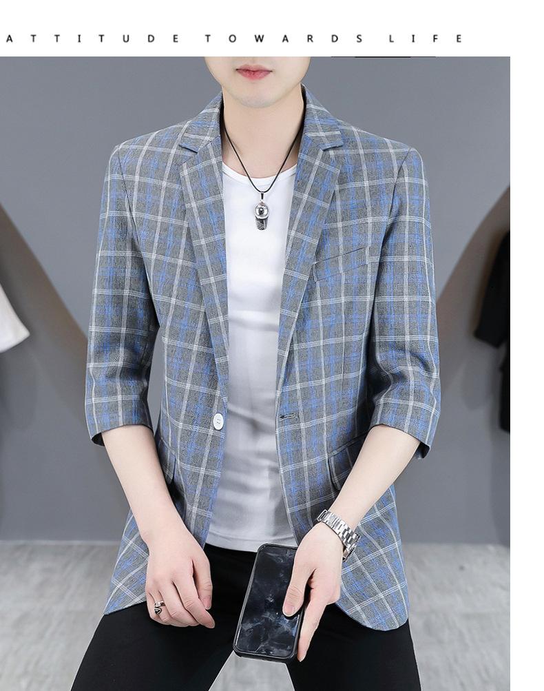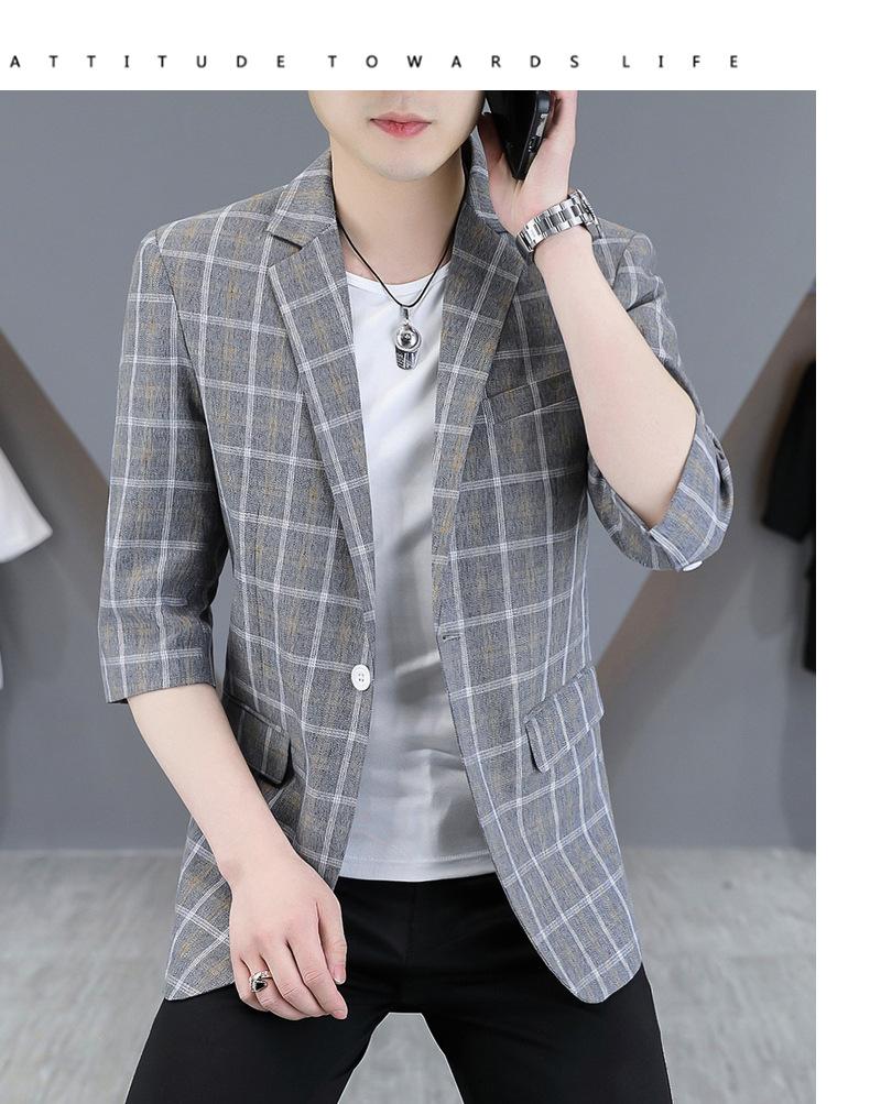 Nuevo Traje de Cuadros de Verano de Manga Media para Hombre Juvenil Slim-fit Traje Pequeño Chaqueta Top Occidental Simple
