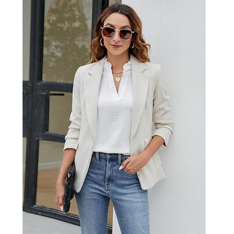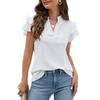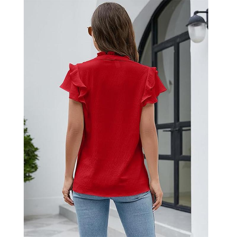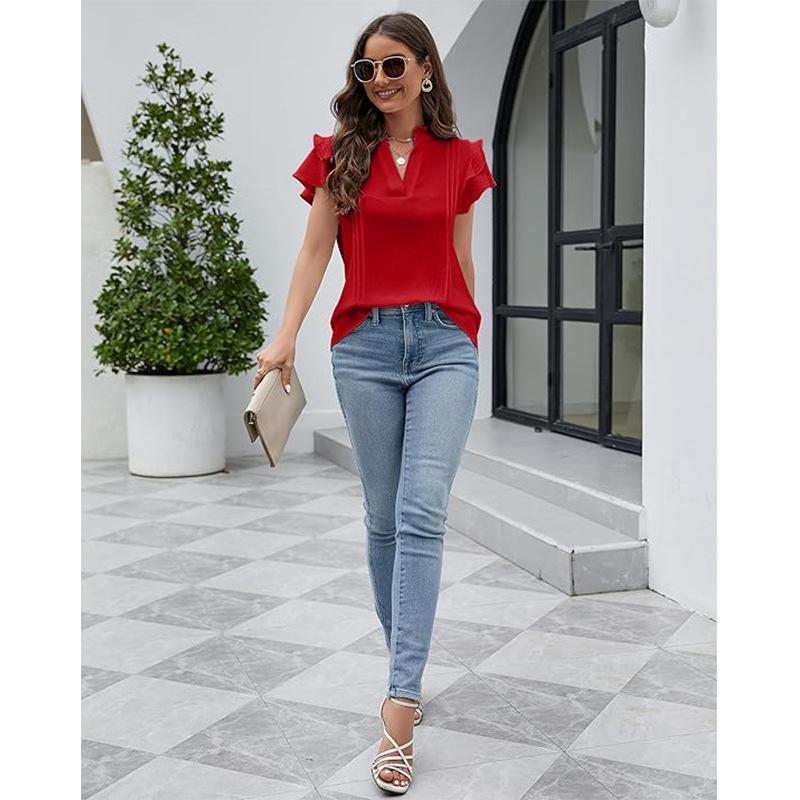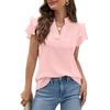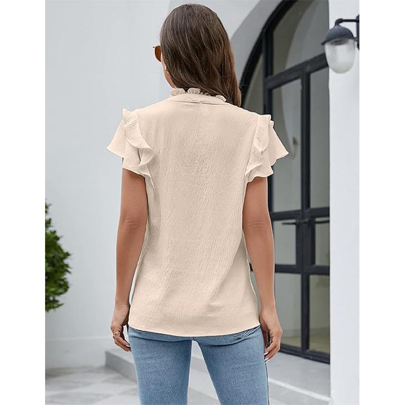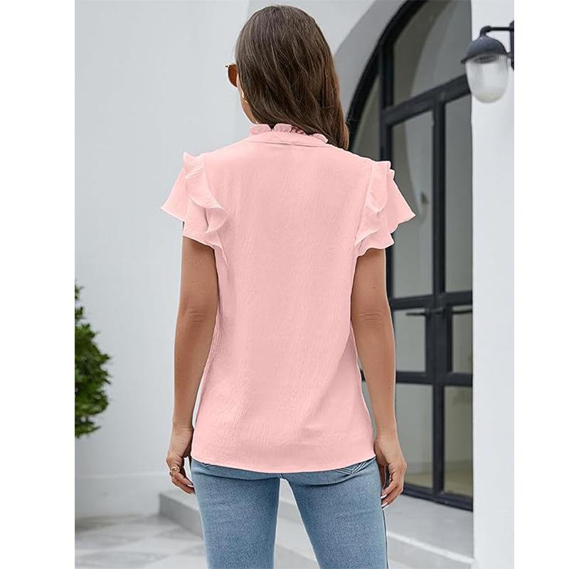 Amazon Estilo Europeo y Americano Elegantes Tops Casuales Camisas de Manga Corta con Volantes Cuello en V Camisas Elegantes para el Trabajo