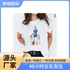 2023 Verano manga corta para mujer Cuello redondo holgada camiseta creativa caricatura estampado patrón camiseta Cuello redondo cuello