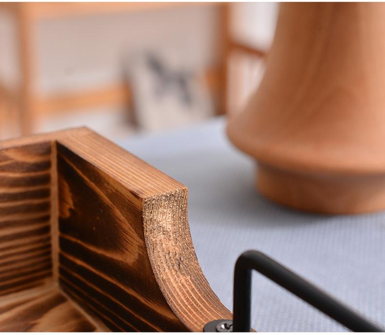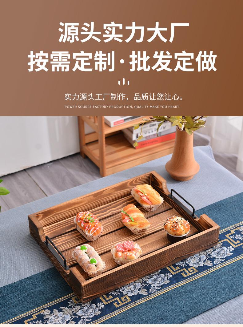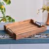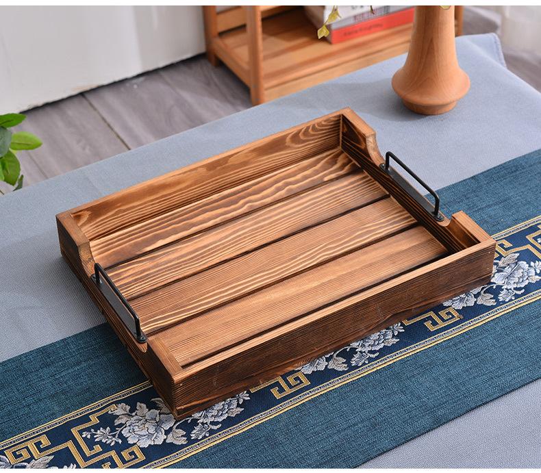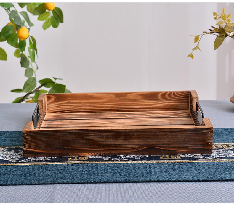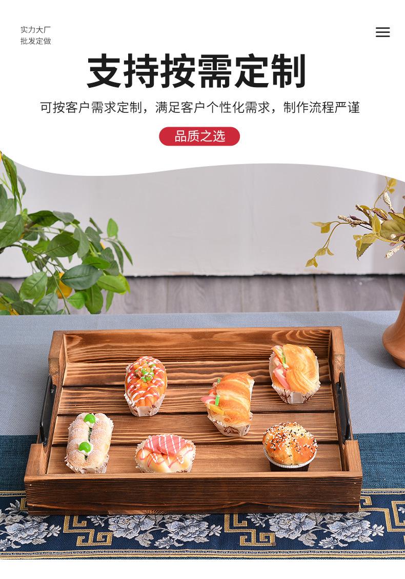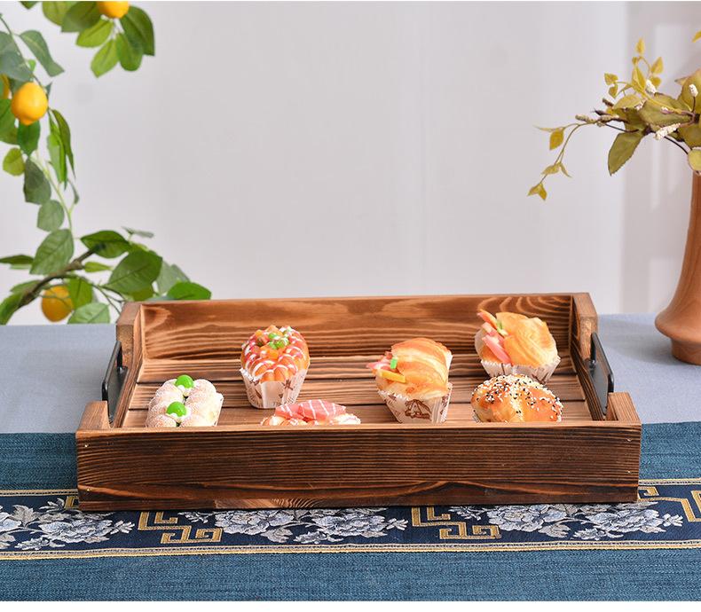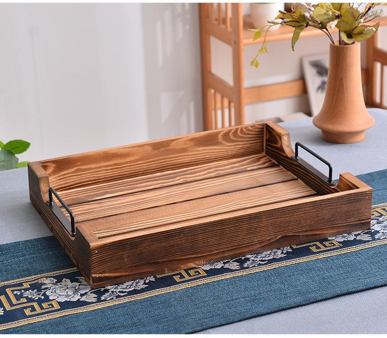 Bandeja de Madera Estilo Country Americano Bandeja de Servicio Rectangular Decoración para Bebidas de Café Madera Sólida Bandeja Quemada al por Mayor