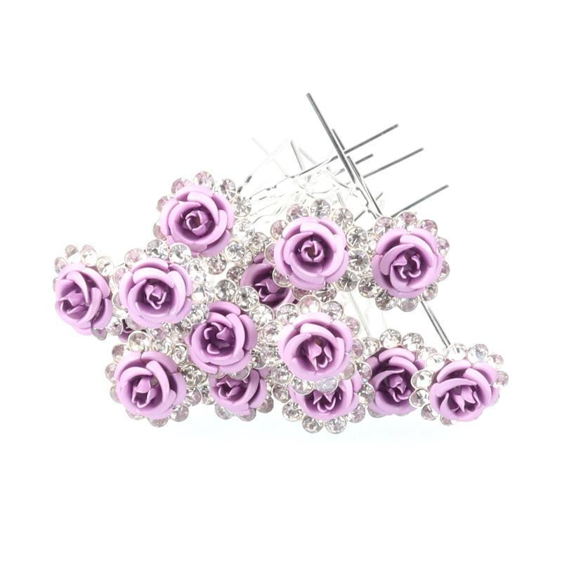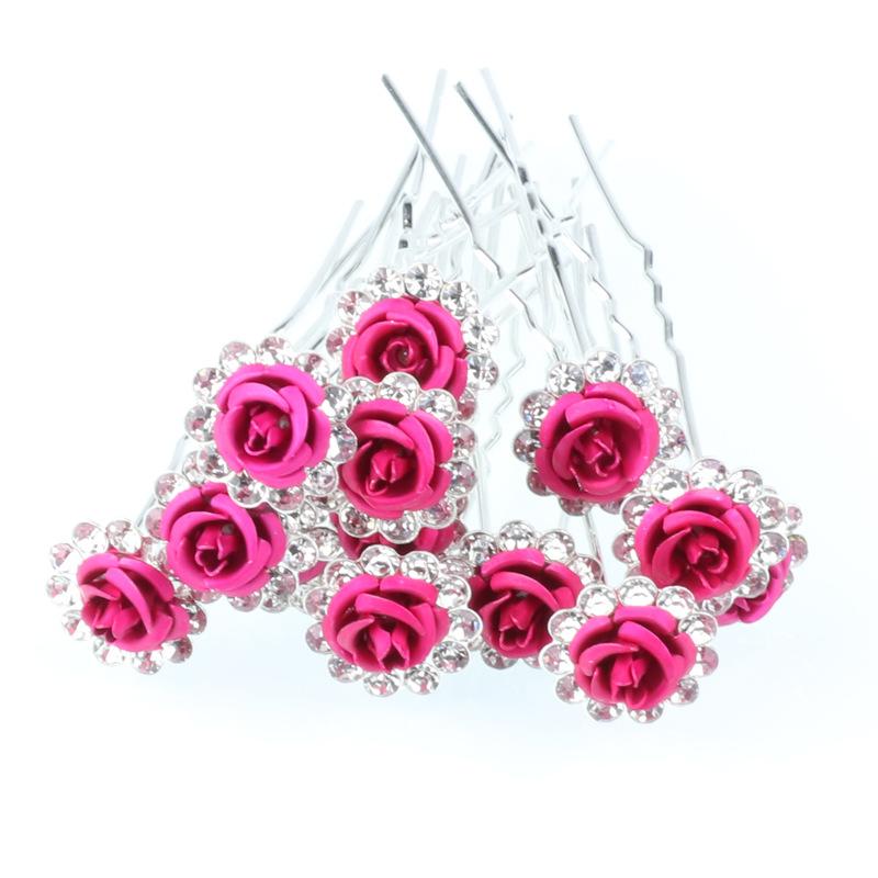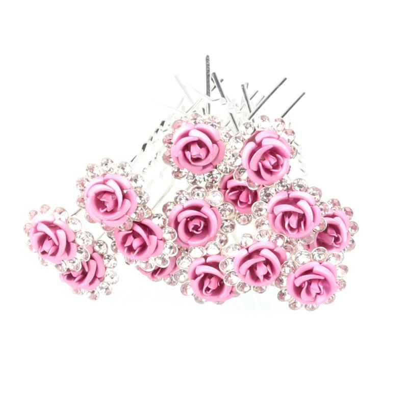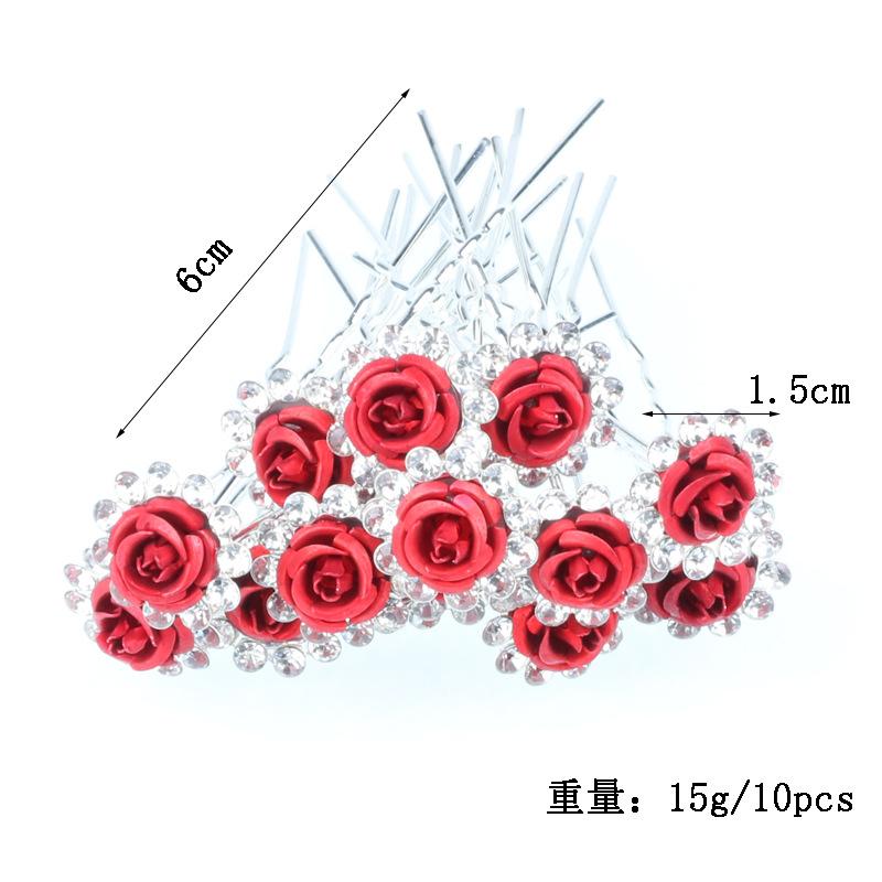 Tocado de Comercio Exterior Accesorios de Cristal Horquilla de Flor Rosa Clip en U Trenzado Recogido Pasador de Inserción para Niños Estilismo Nupcial