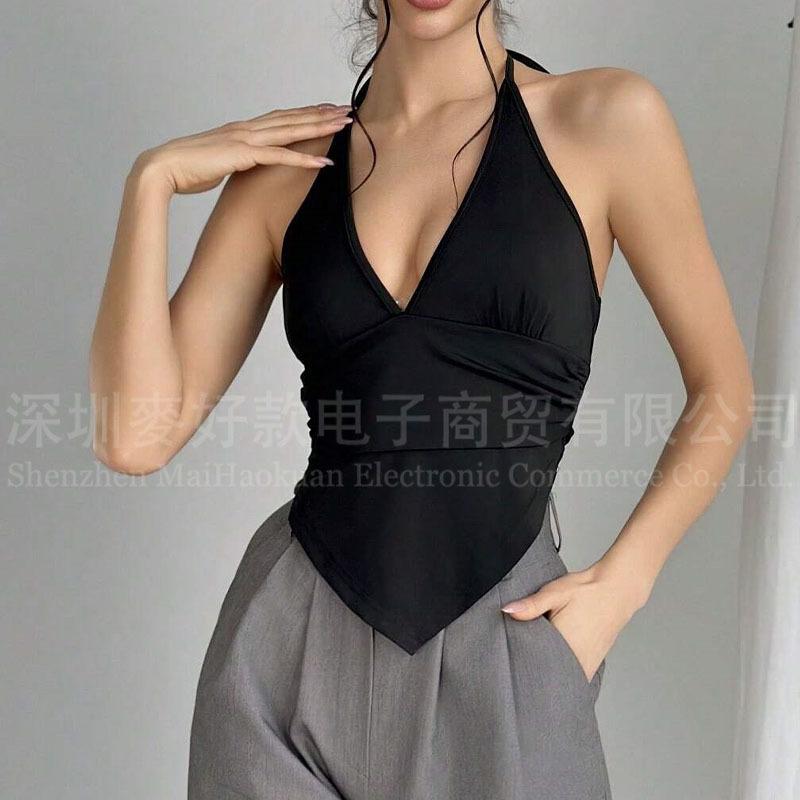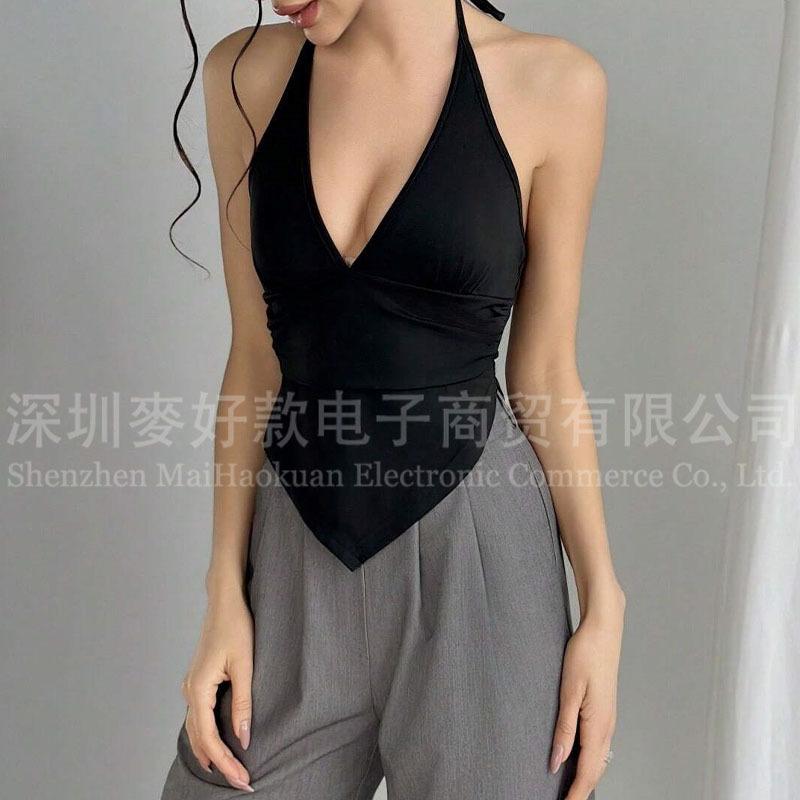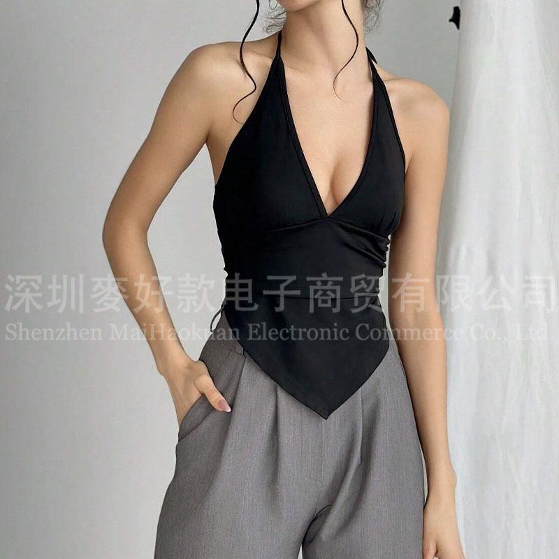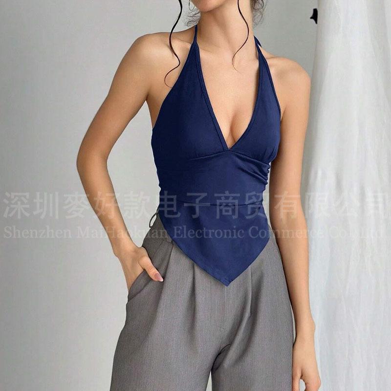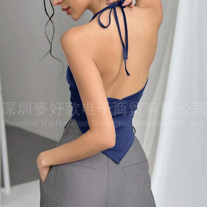 Compra Amazon Nuevo Europeo y Americano Sexy Deseo Puro Combinable Ajustado Moderno Chica Picante Casual Elegante Cuello Espalda Descubierta Tirantes al por mayor en Joom.pro