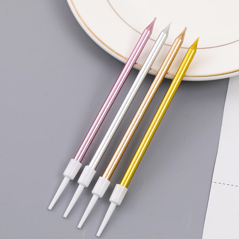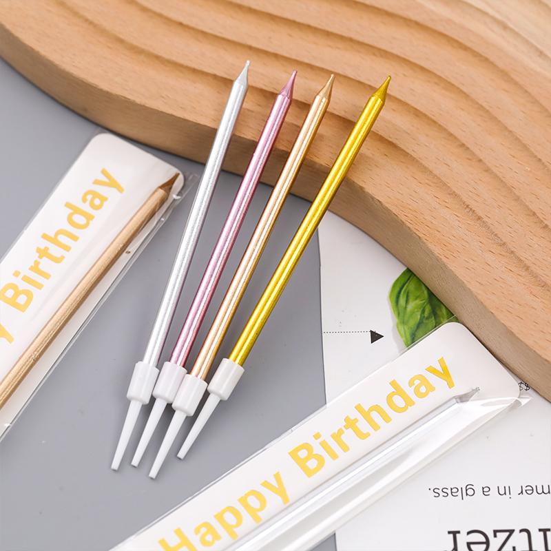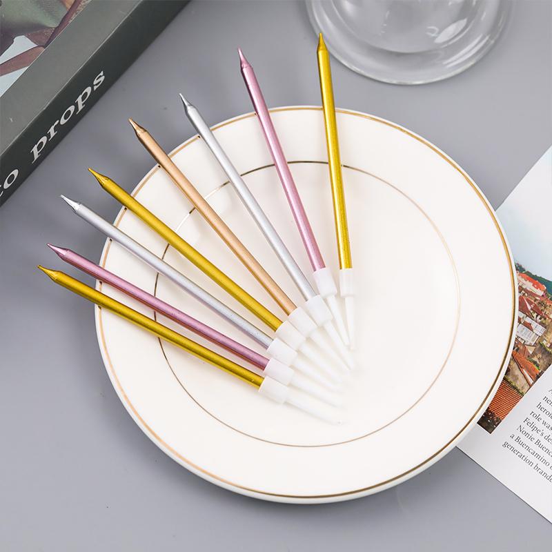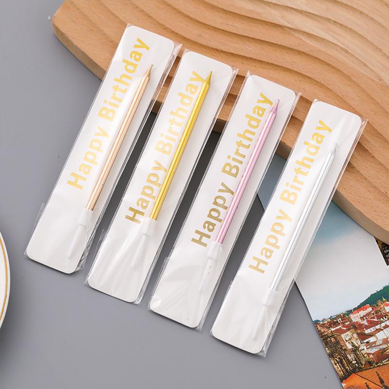 Bolsa Individual de Papel de Aluminio de Color Lápiz Recto Vela Horneado Decoración de Pastel Creativo Romántico Dorado Cumpleaños Insertos