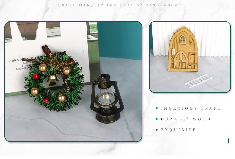 1:12 Puerta de Elfo Navideño para Casa de Muñecas Mini Puerta de Hada para Casa de Muñecas Decoración Navideña Escena Casa