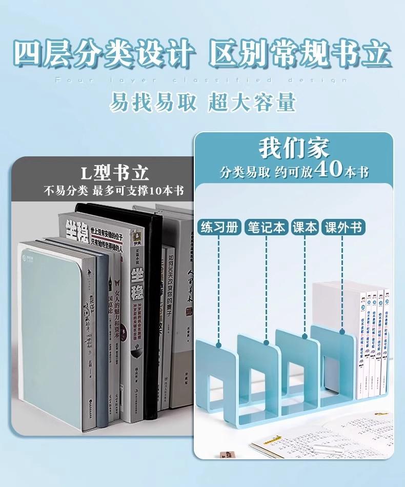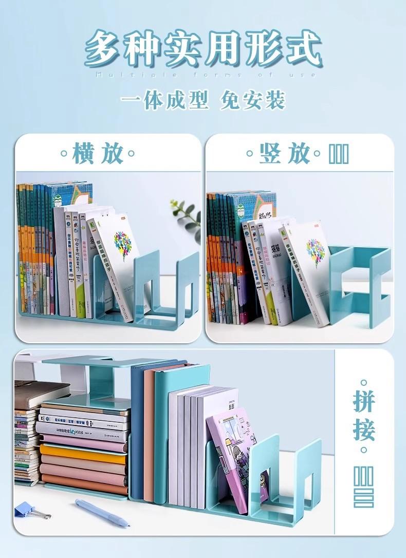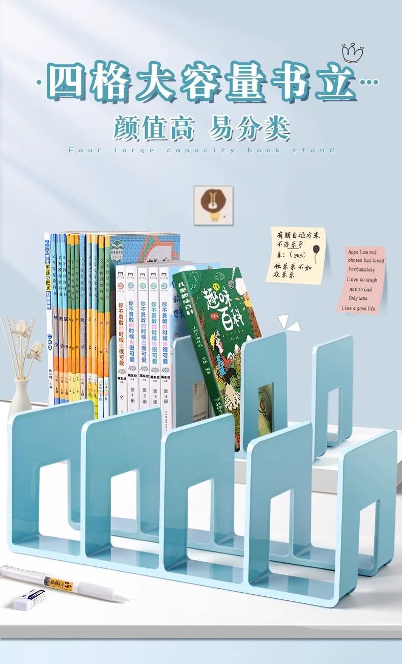 Librero divisor de cuatro secciones, estante de almacenamiento de escritorio, clip para libros engrosado, sujetalibros fijo sobre la mesa