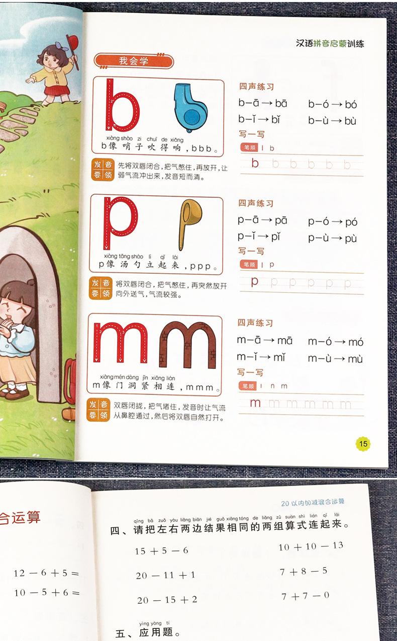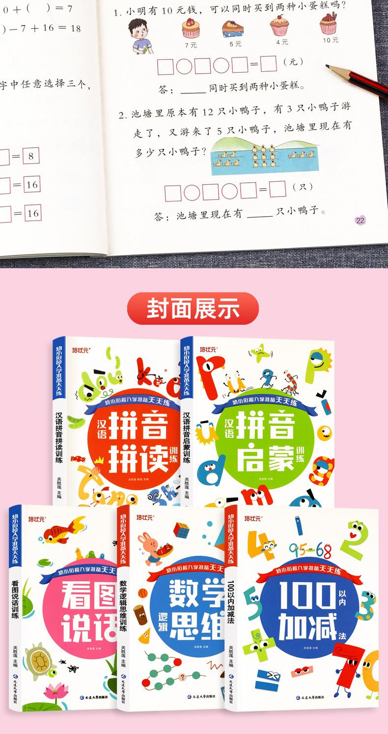 Transición de Educación Infantil a Primaria Preparación para la Admisión Práctica Diaria Entrenamiento de Descripción de Imágenes en Pinyin Pensamiento Lógico Matemático de Suma y Resta