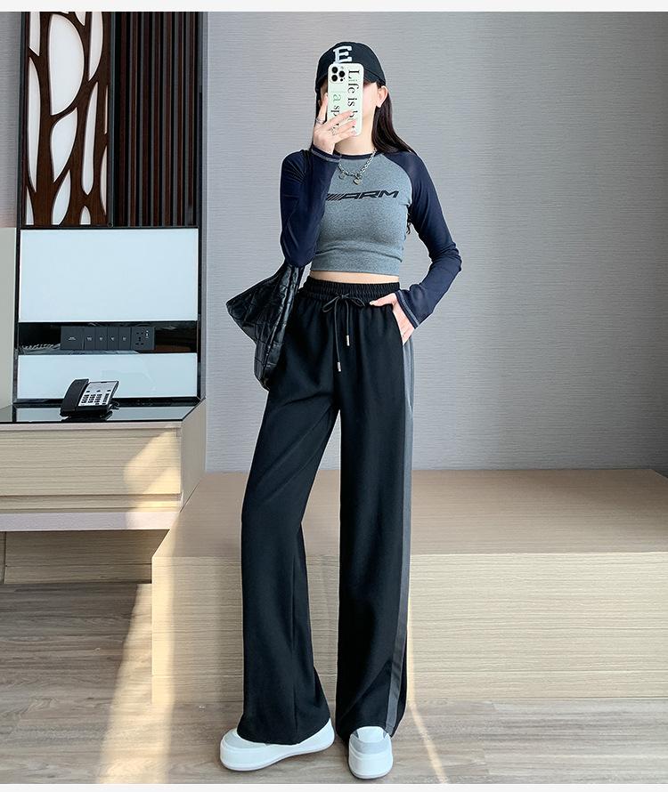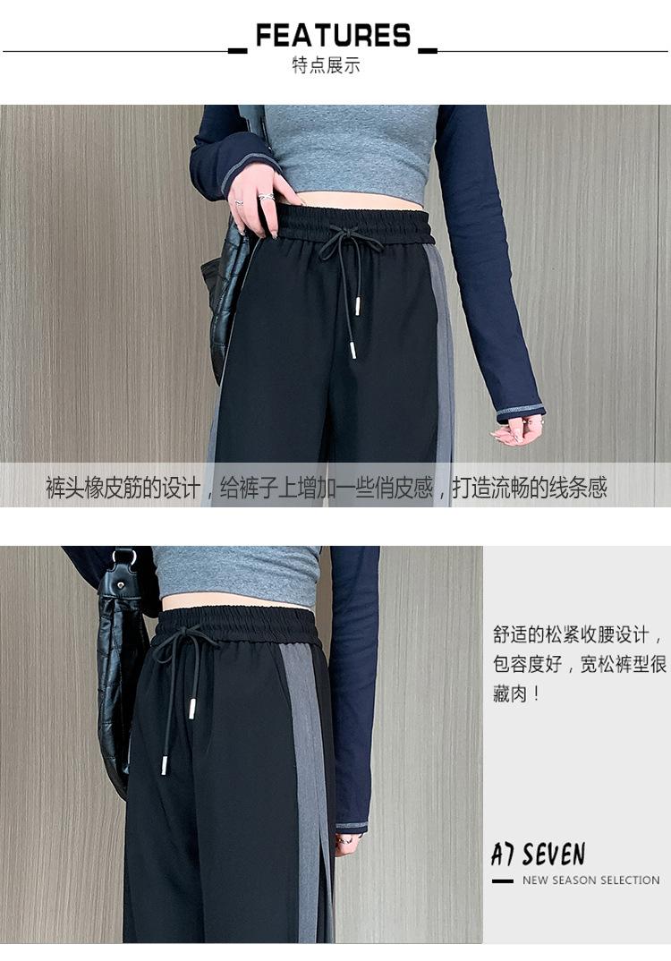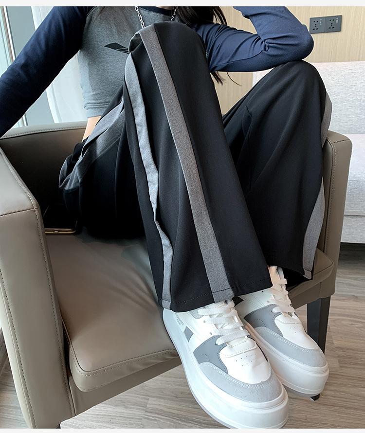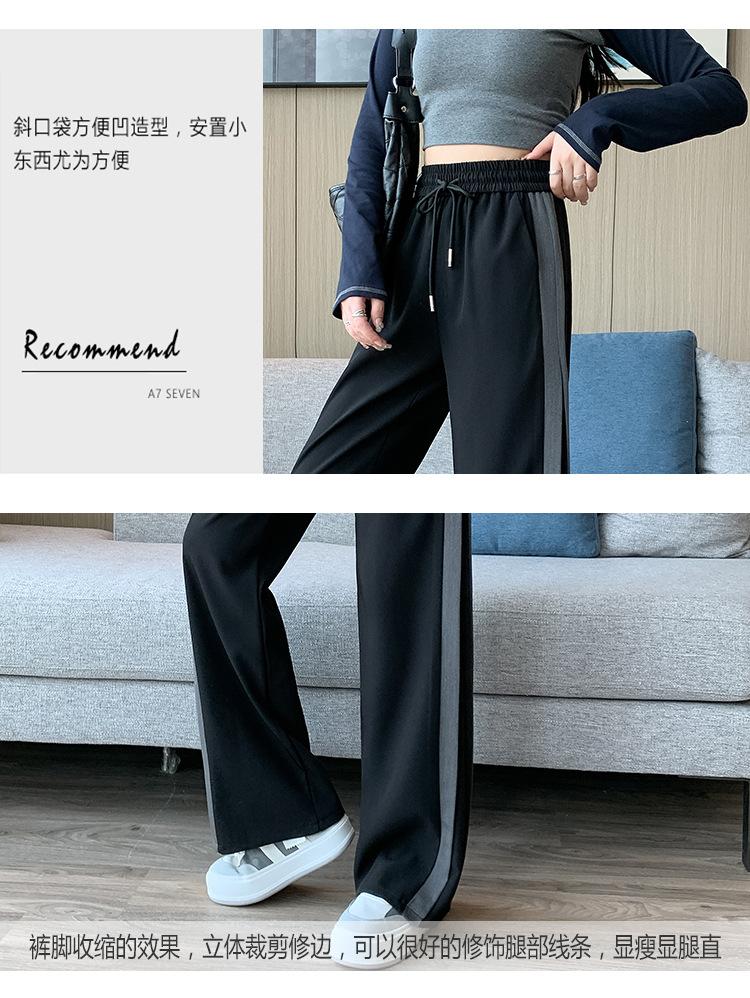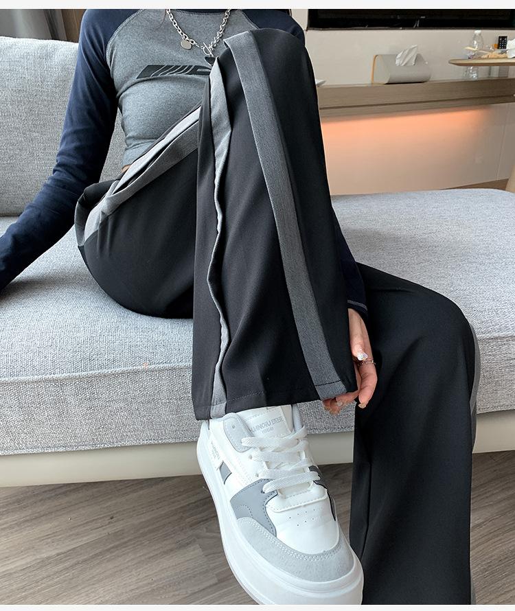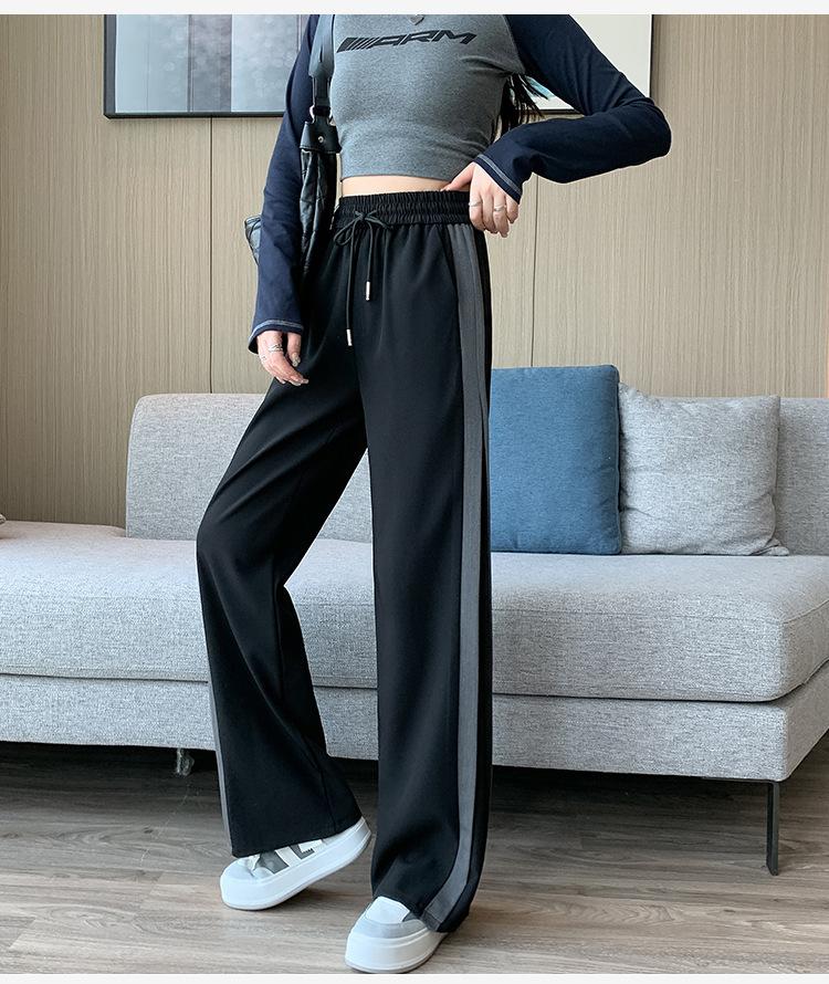 Pantalones de Pierna Ancha para Mujer Primavera y Otoño Cintura Alta Drapeado Costuras Pierna Recta Sueltos Casuales Piso Sueltos Casuales Pantalones Deportivos