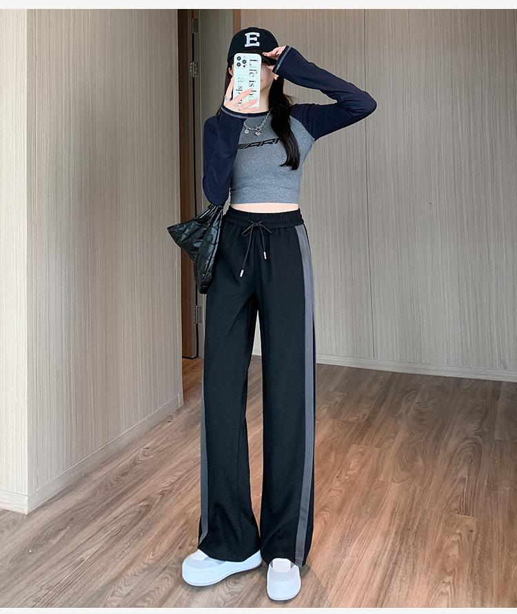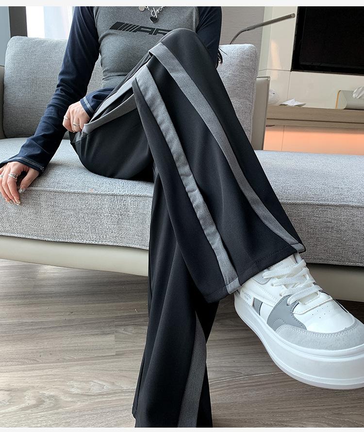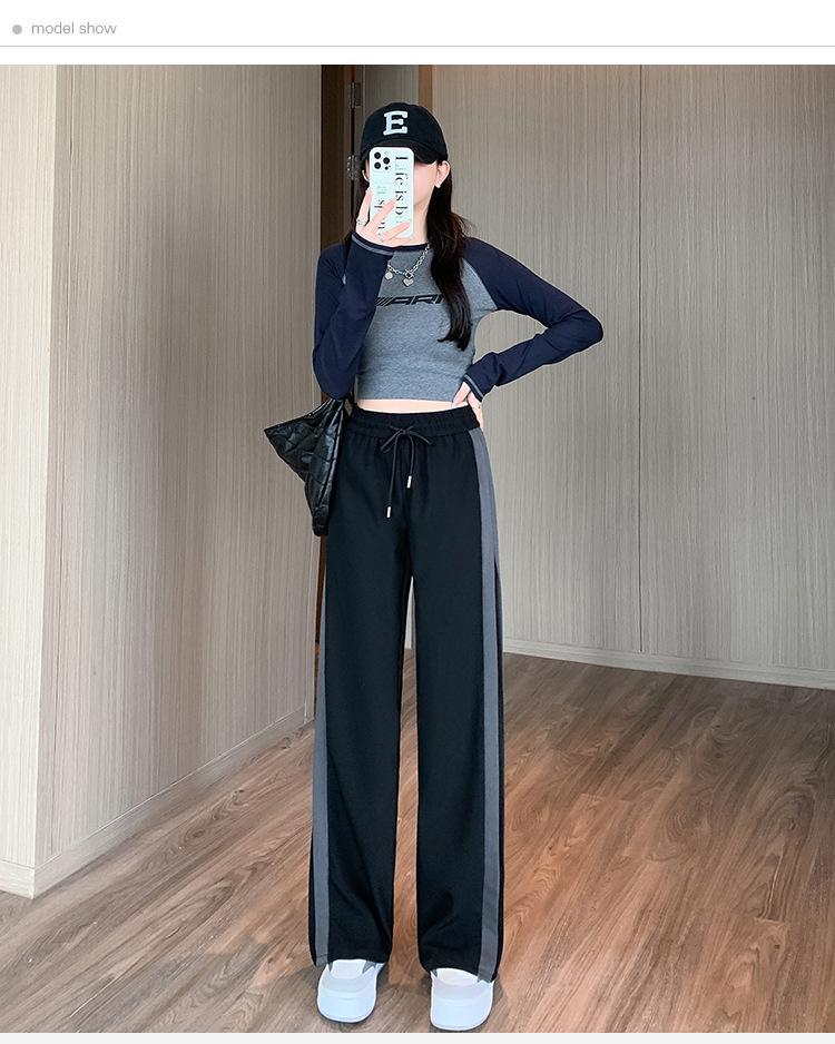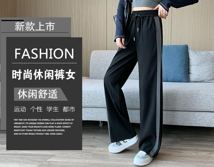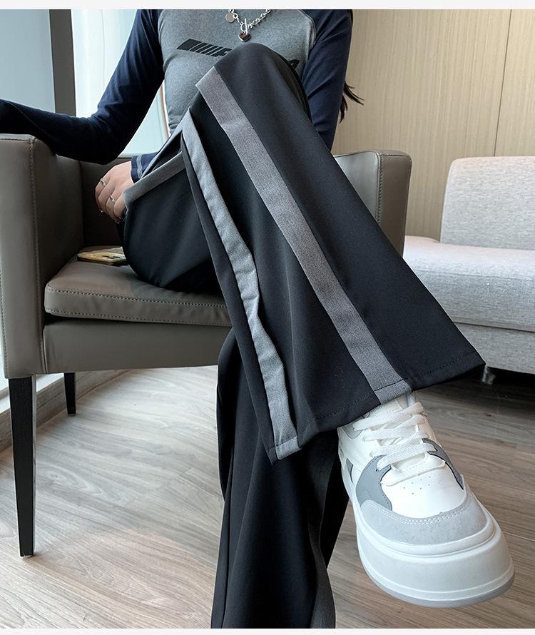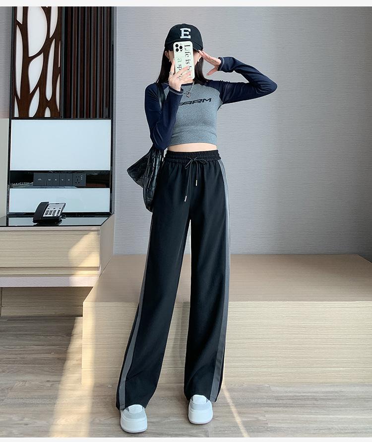 Pantalones de Pierna Ancha para Mujer Primavera y Otoño Cintura Alta Drapeado Costuras Pierna Recta Sueltos Casuales Piso Sueltos Casuales Pantalones Deportivos