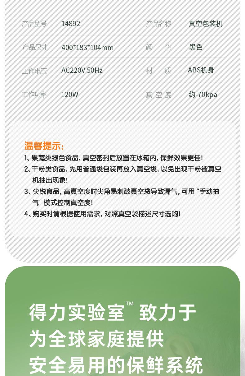 Deli 14892 máquina de vacío embalaje automático sellado embalaje de alimentos compresión pequeño conservación negocio hogar máquina selladora