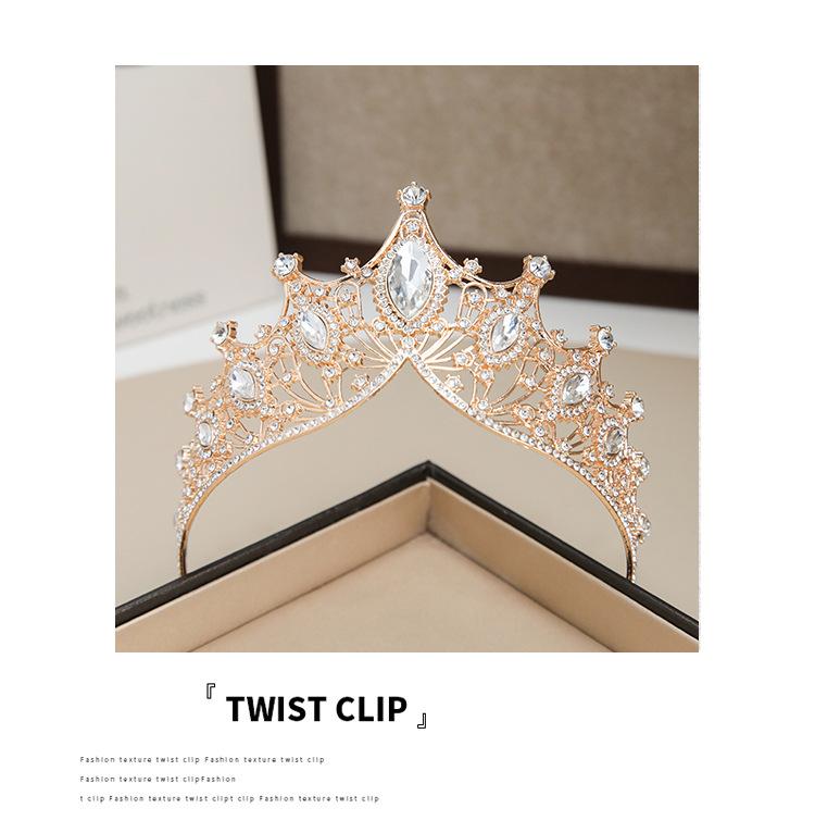 Tocado de boda europeo y americano, estilo barroco retro, gran corona, accesorios para el cabello de fiesta, nueva corona de novia de lujo con diamantes de imitación.