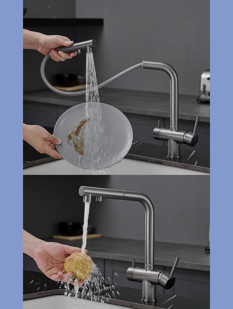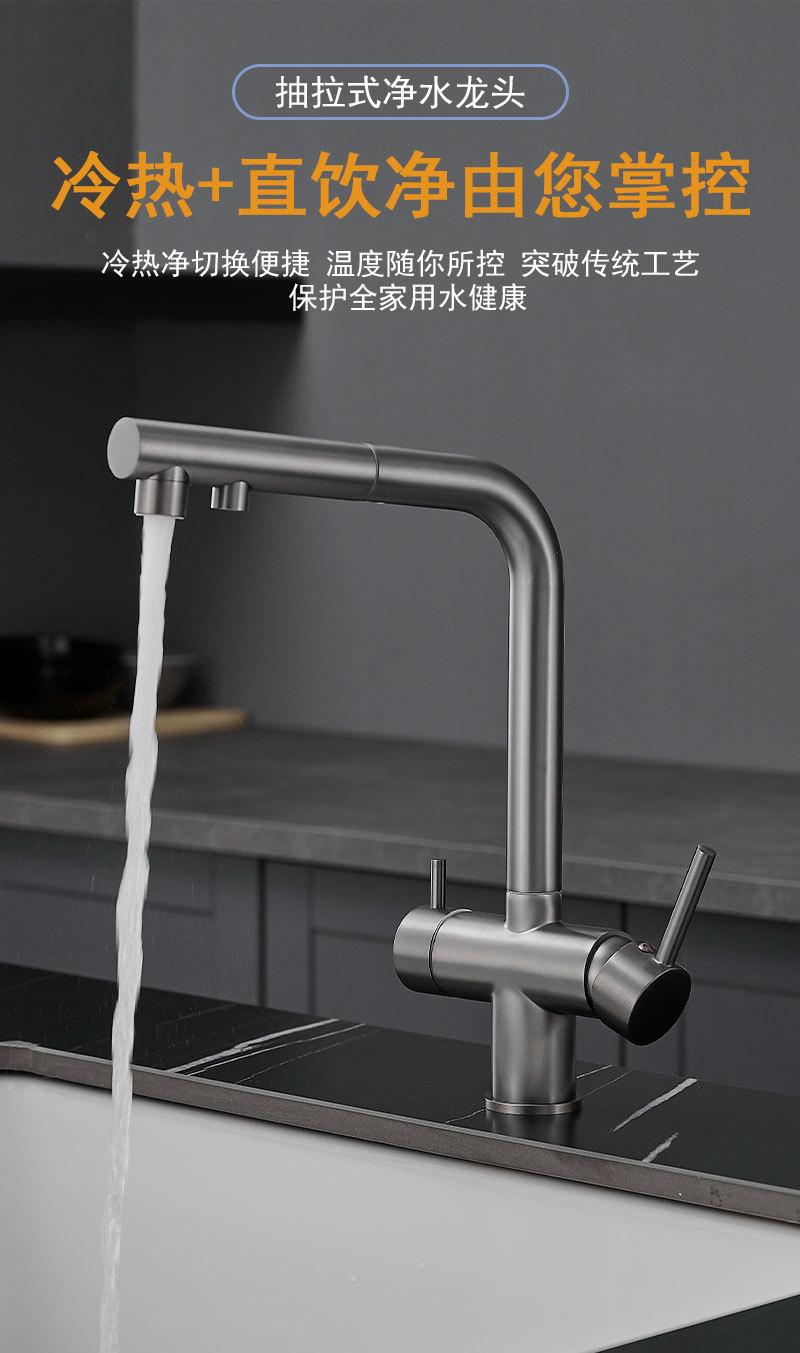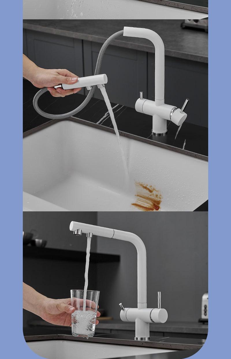 Compra Grifo Tres en Uno de Cobre Puro Transfronterizo para Cocina con Extracción, Caliente y Frío, Limpio, Giratorio, para Fregadero, Grifo para Agua Potable Directa al por mayor en Joom.pro
