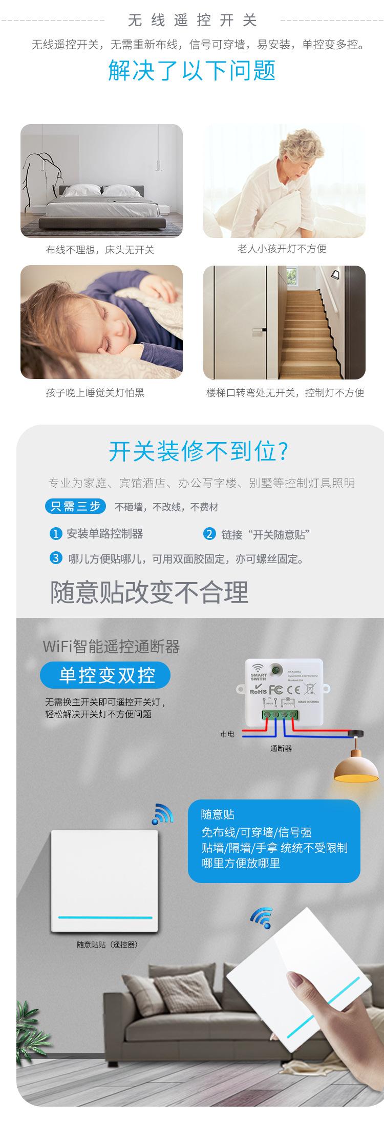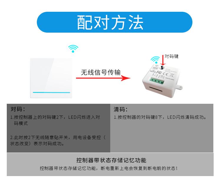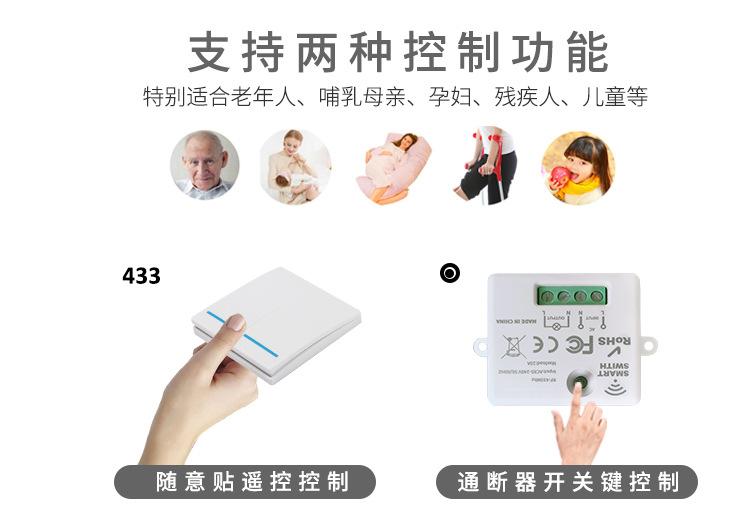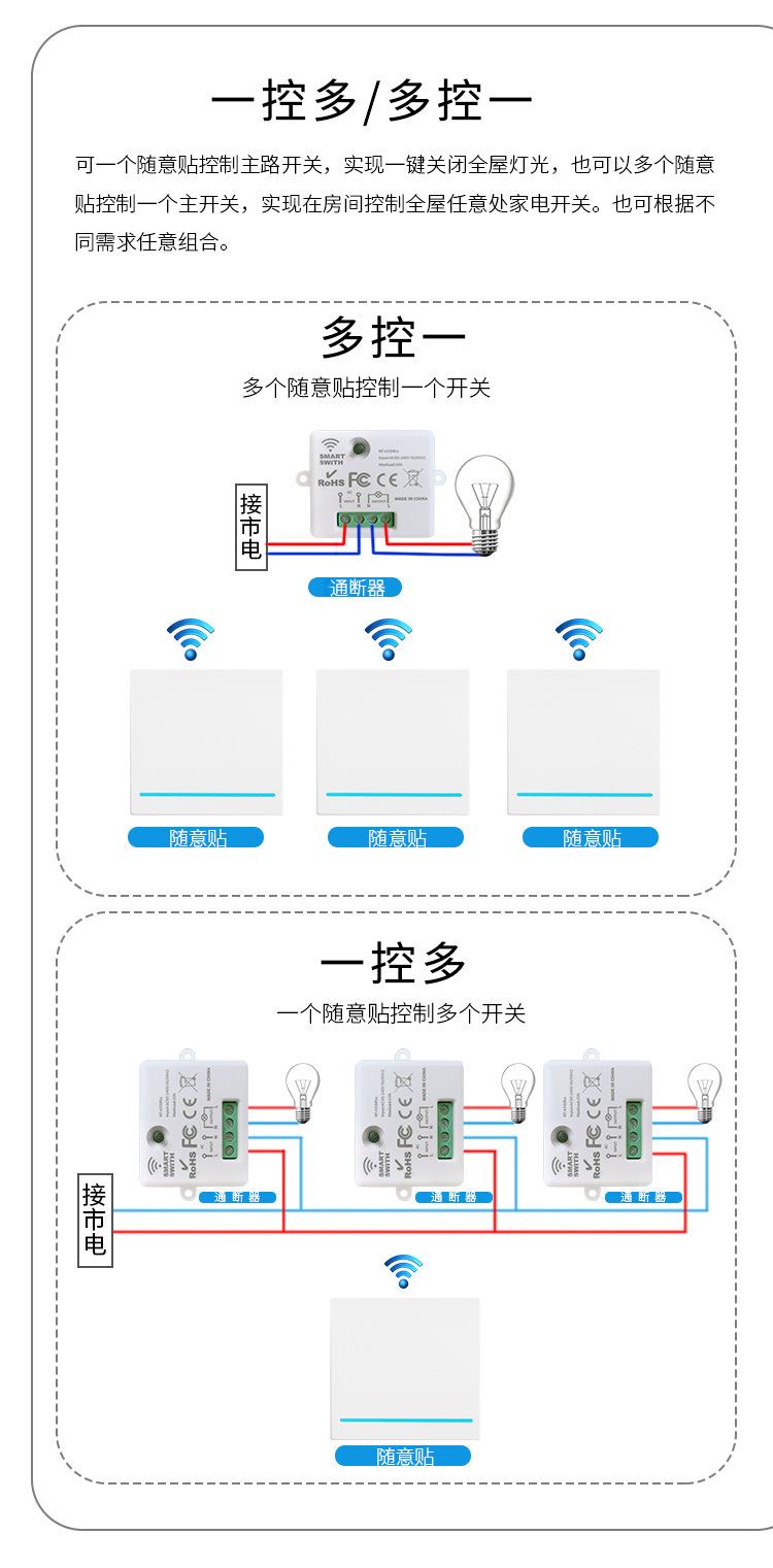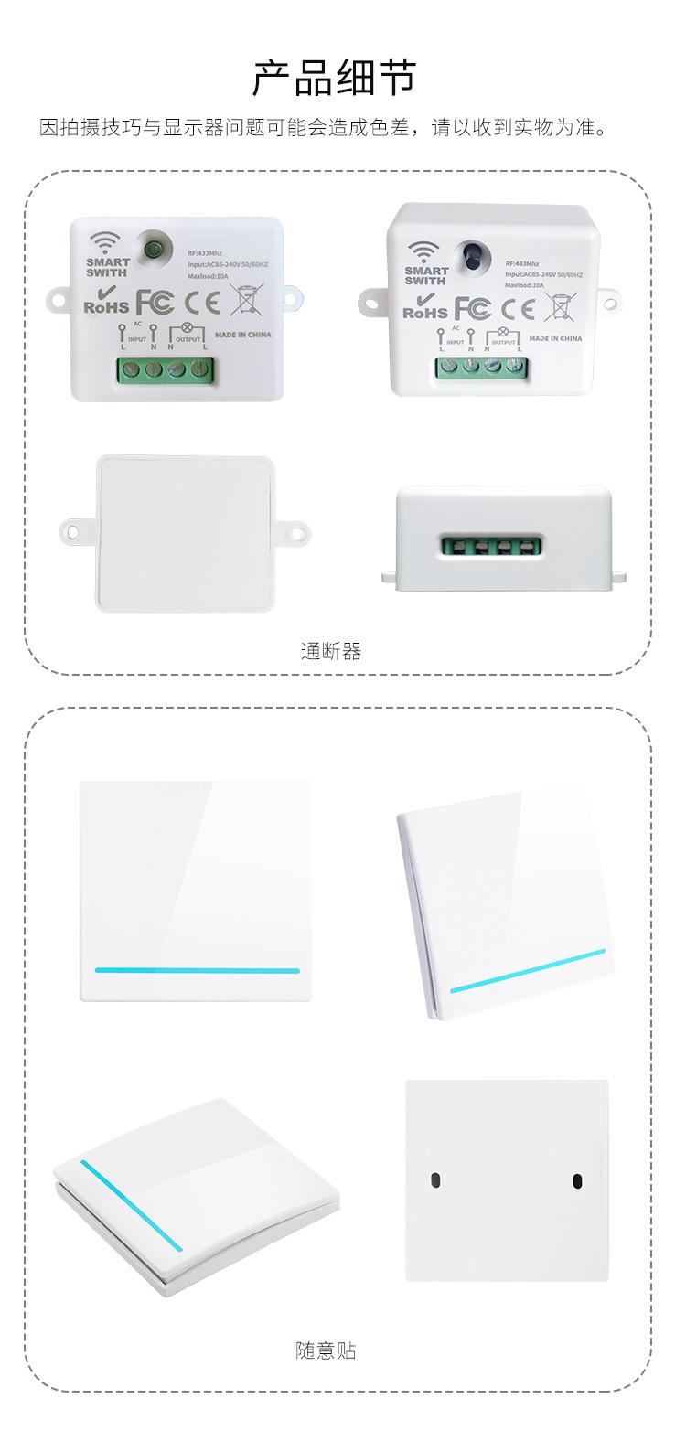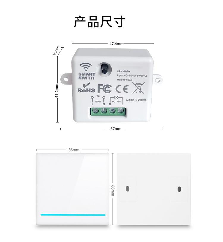 Interruptor Inalámbrico de Control Remoto Tipo 86 RF433 Libre de Cableado Interruptor Adhesivo Aleatorio Interruptor de Control Dual Personalización